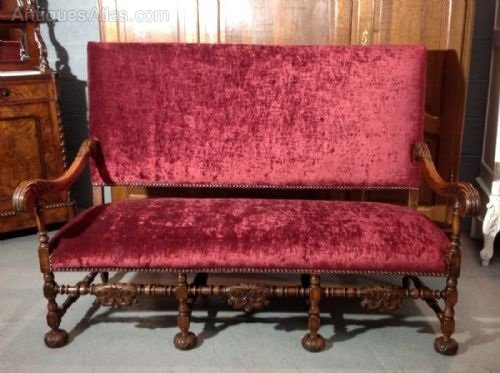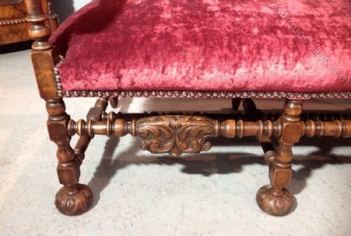 The bench has been reupholstered in our workshop in a wine coloured crushed draylon fabric.