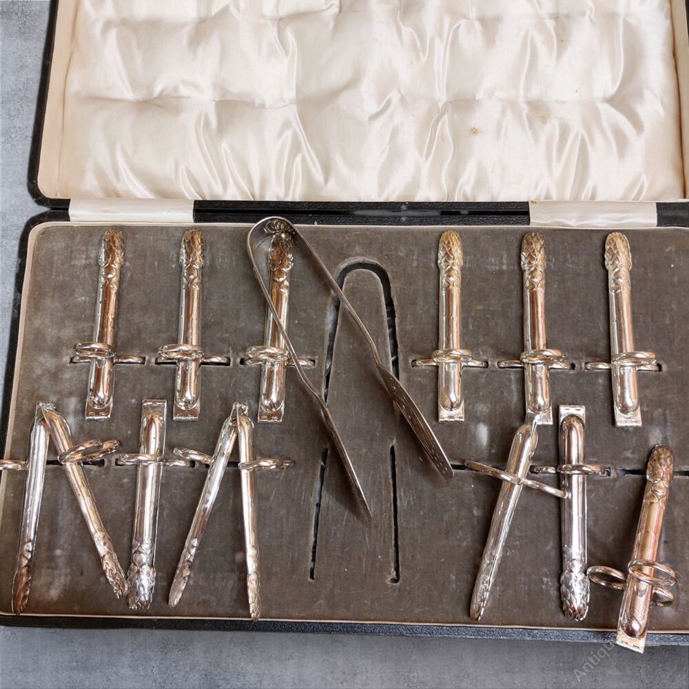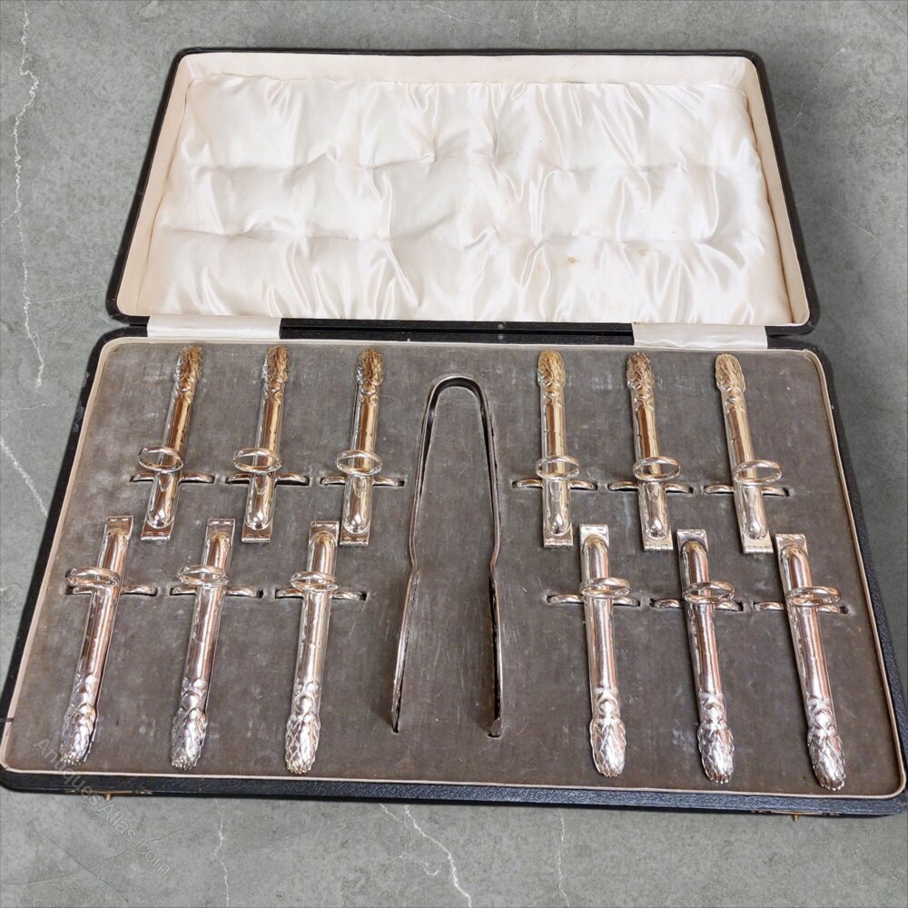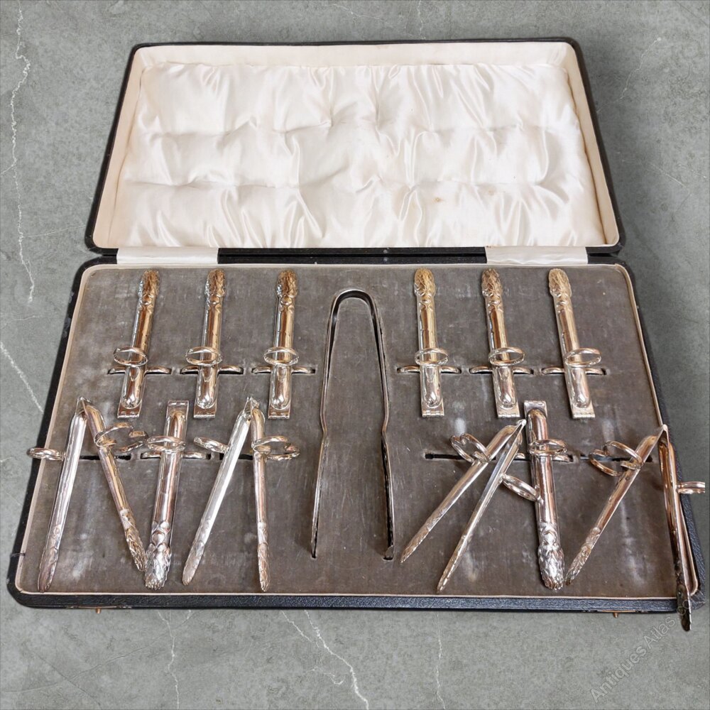 Cased Set 12 Asparagus Silver Plated Serving Set