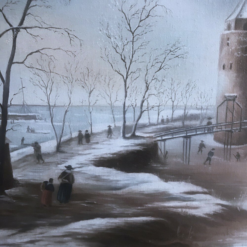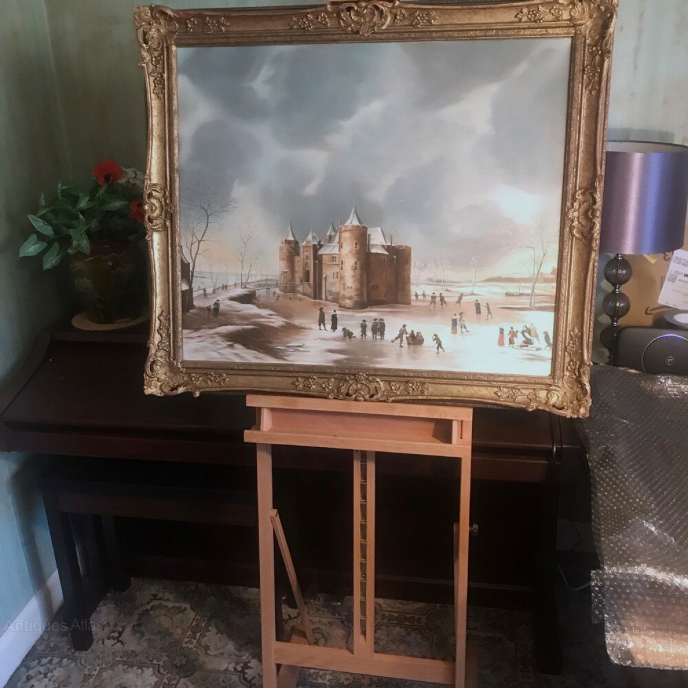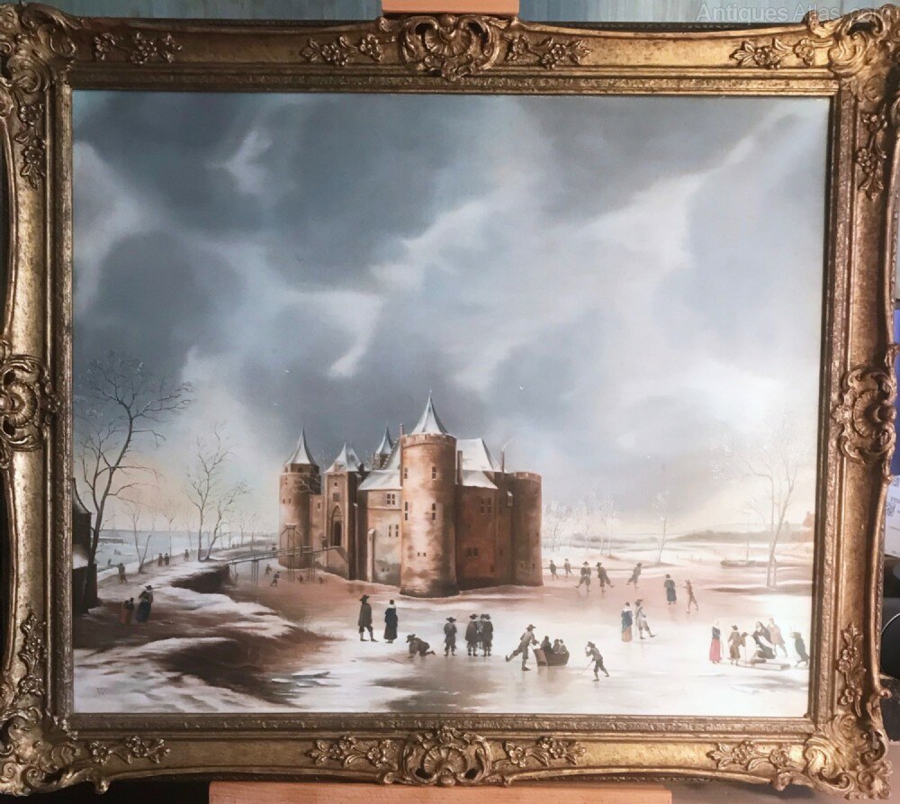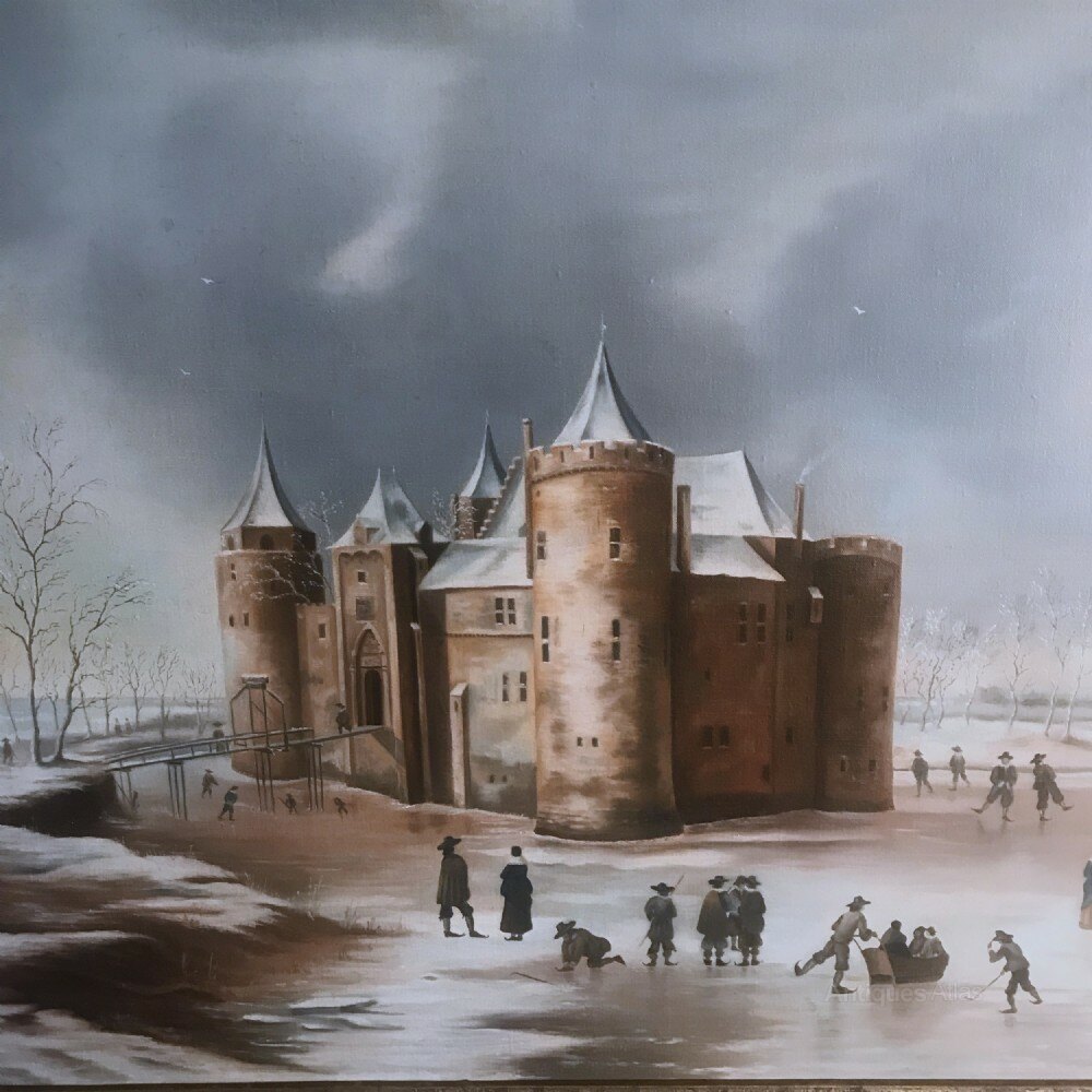 Large Quality Oil Painting On Canvas Of The Castle Muiden After Dutch Artist Jan Beerstraaten