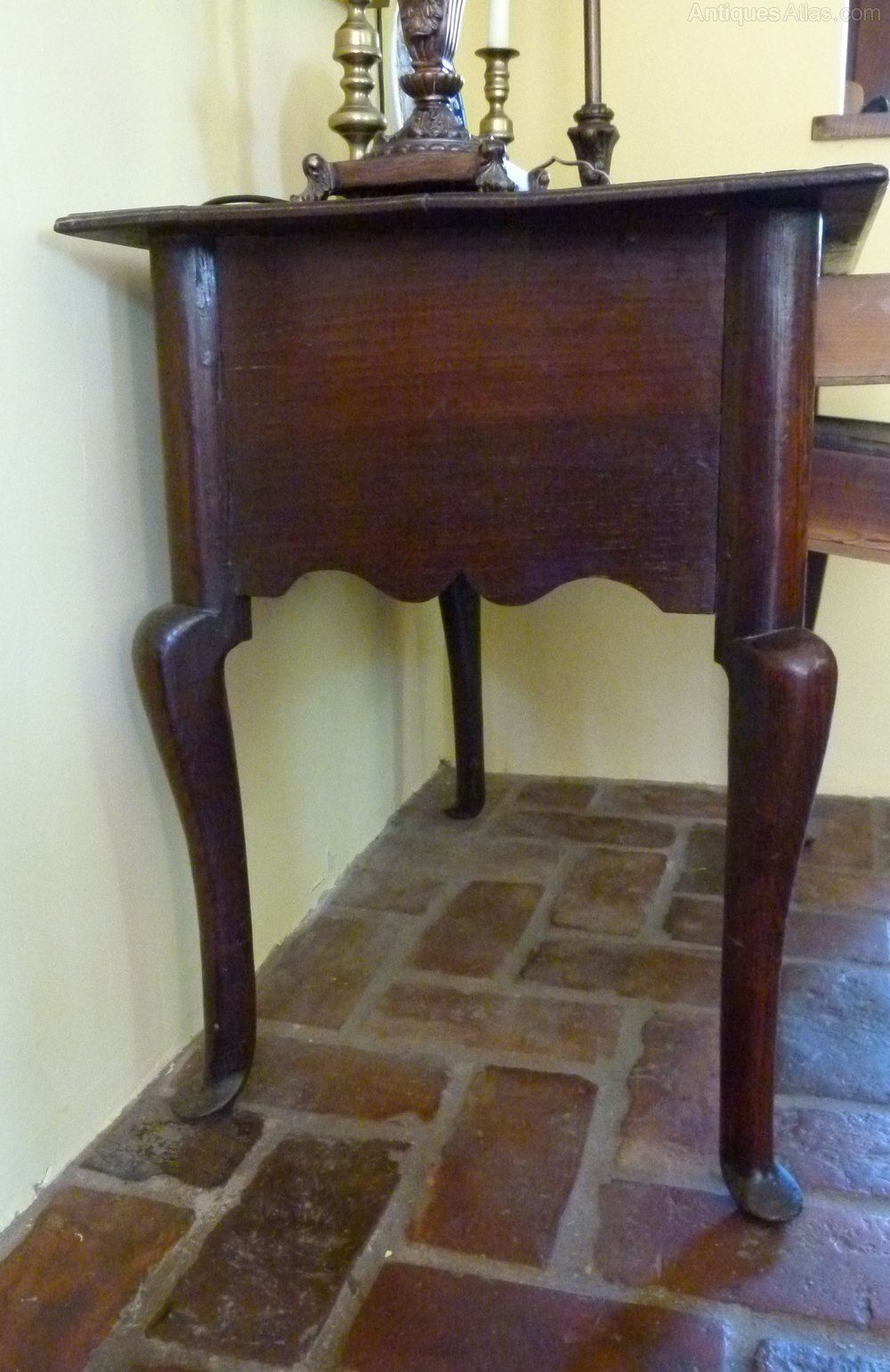 What makes this very charming lowboy unusual are the wonderful rounded projecting corners to the top of each leg, which then kicks out into an elegant curvaceous cabriole leg, terminating in club feet.