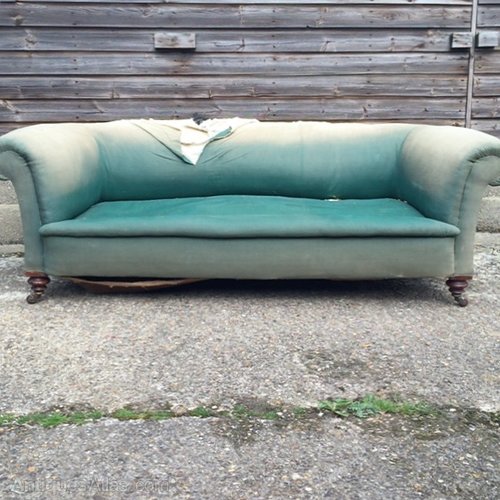 Mid Victorian three seater sofa standing on turned walnut legs requiring re-upholstery.