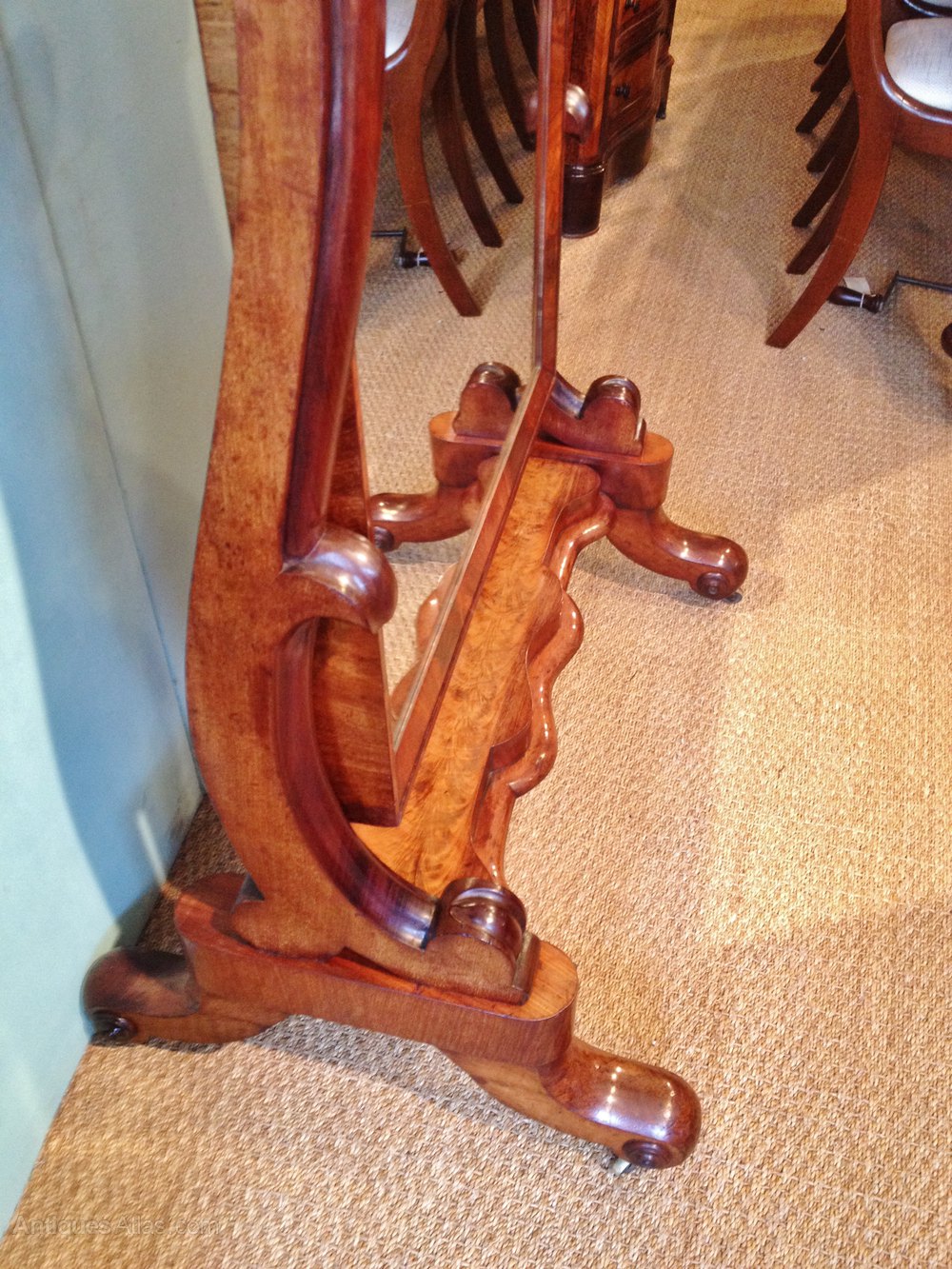 19thC Rosewood and Marquetry Inlaid Cheval Mirror