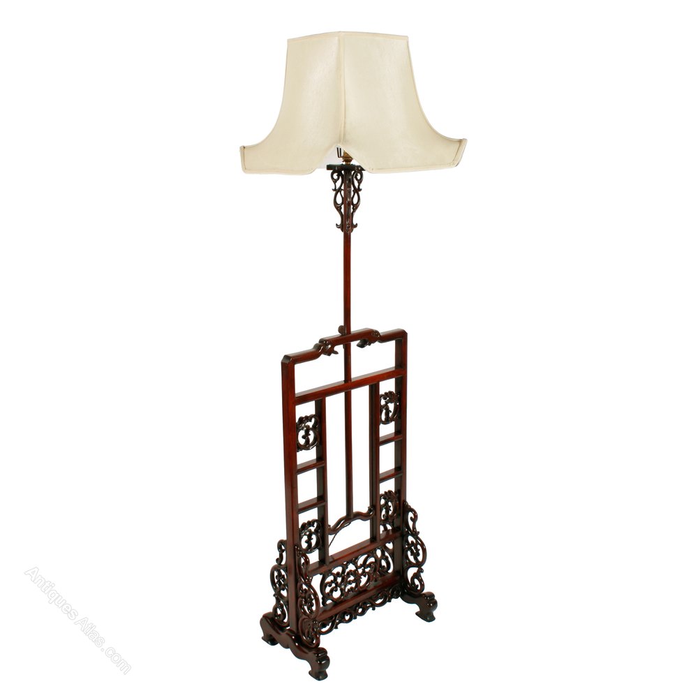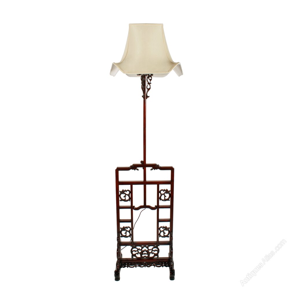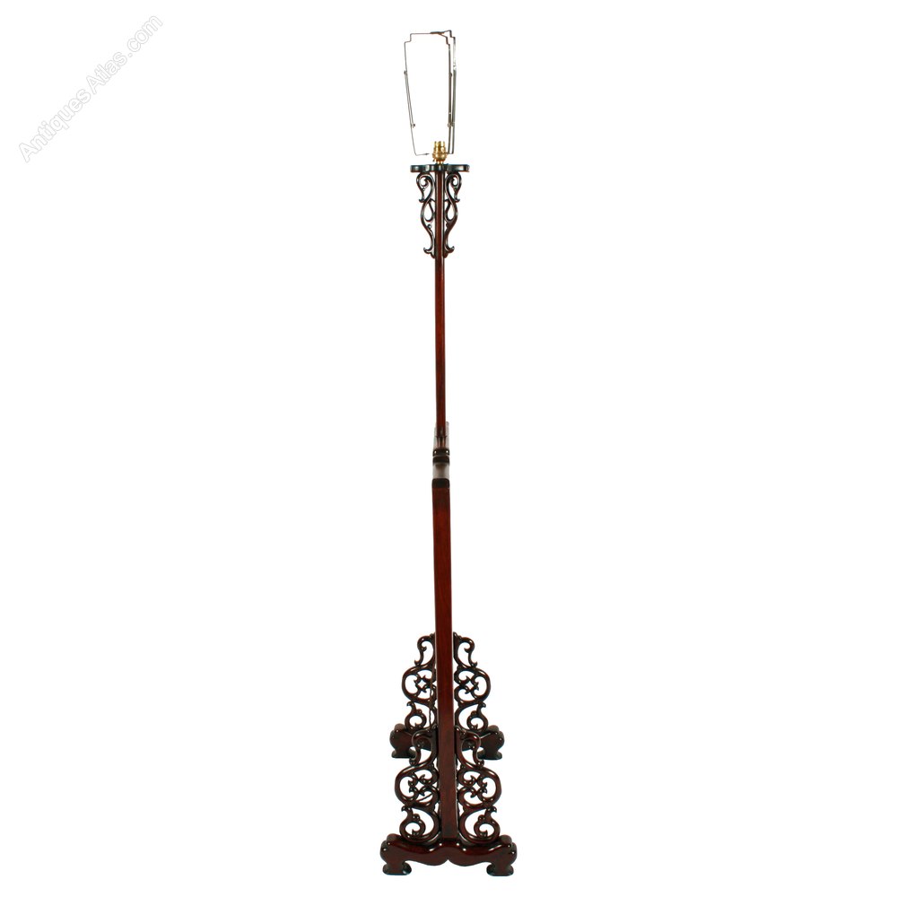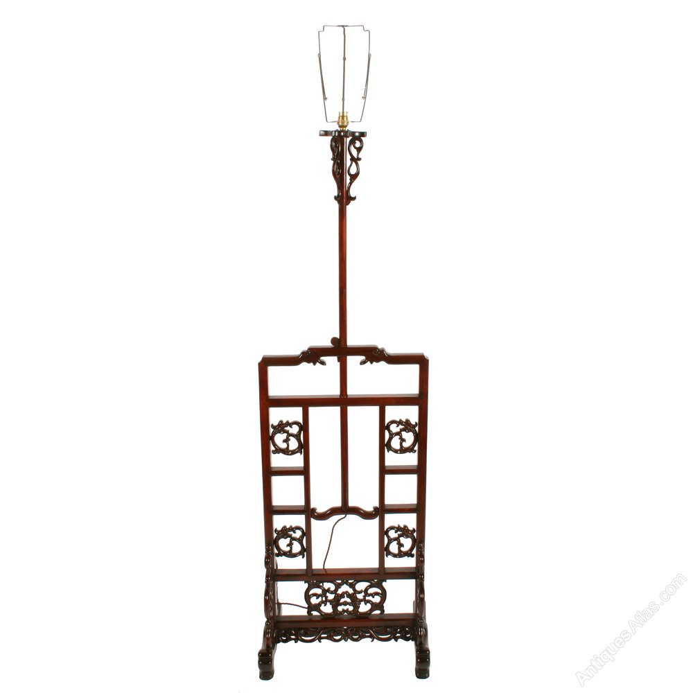 An early 20th century Chinese carved rosewood standard lamp.