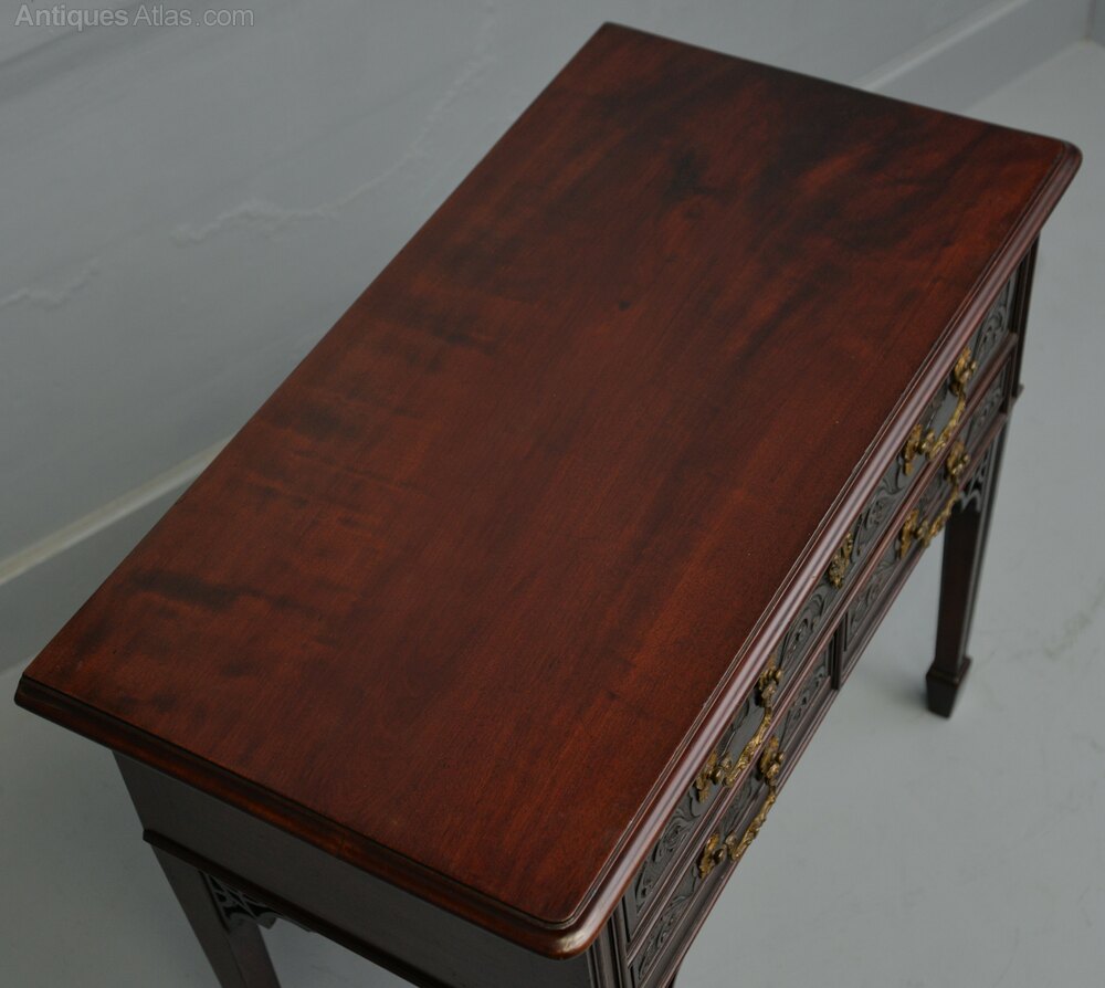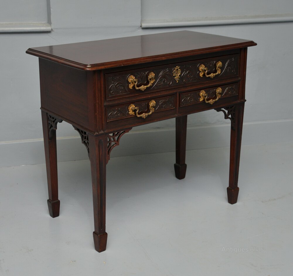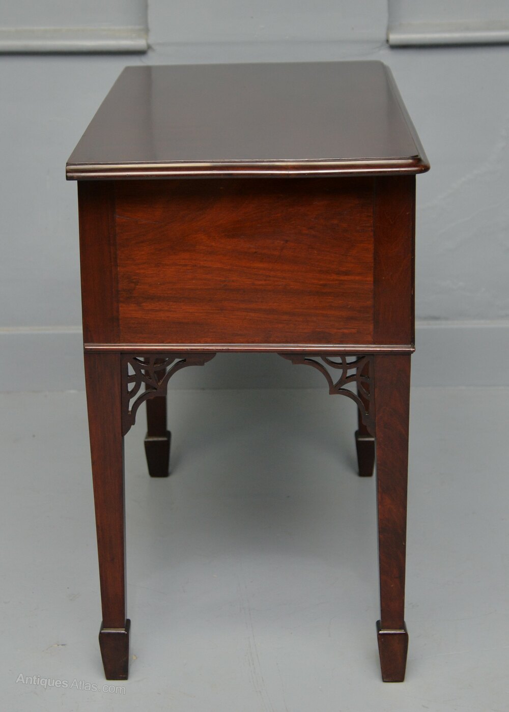 Elegant fretwork carved spandrels to the top of each tapering leg, finishing with spade feet