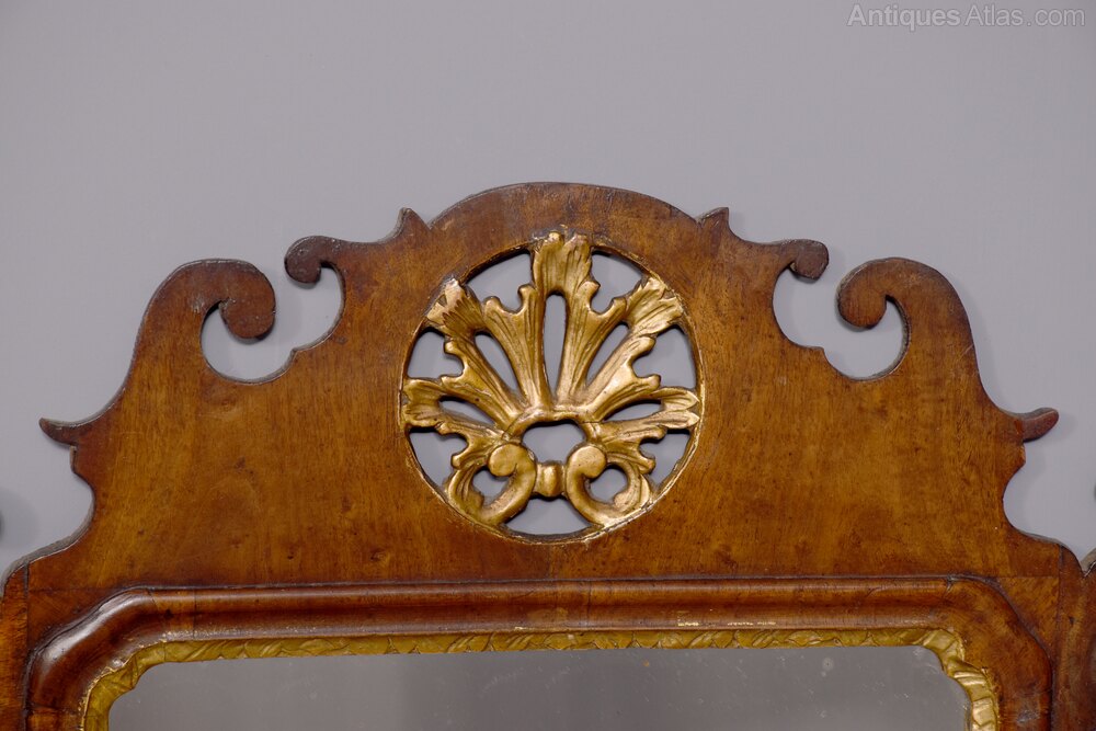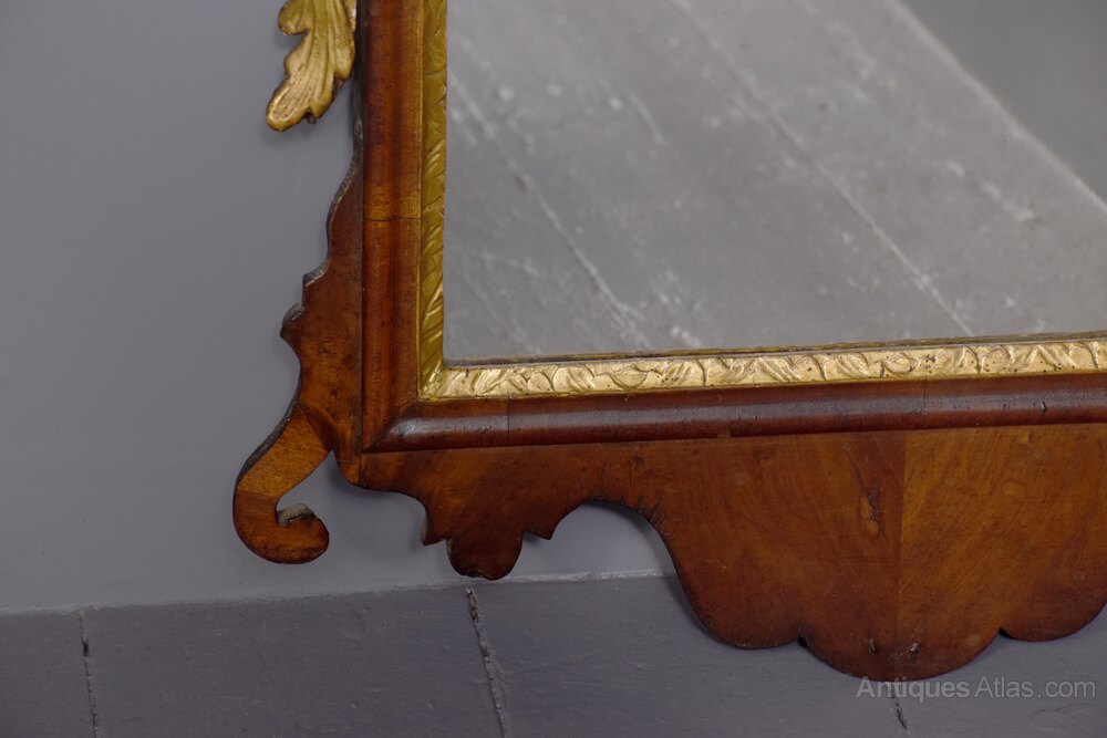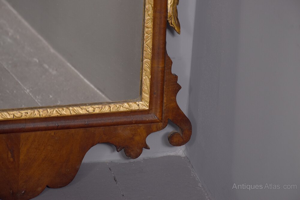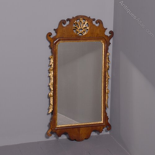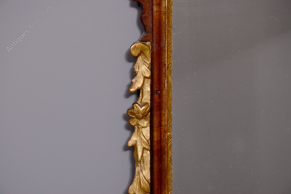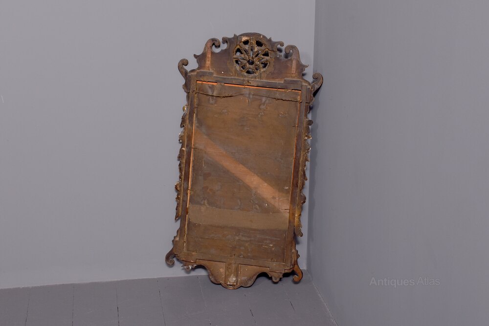 Circa 1790. George 3rd gilt and mahogany Chippendale style fretted wall mirror. Surmounted by a fretted crest with gilded acanthus leaves, fretted arched corners and a shaped base, the moulded mirror frame with a gilded slip and the original mirror plate in overall good condition, minor blemishes expected on an original plate. With original back.