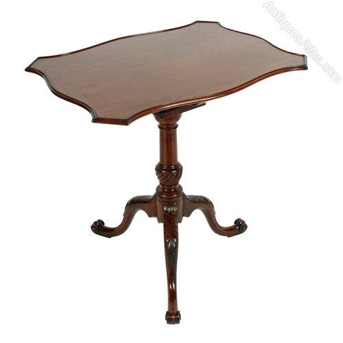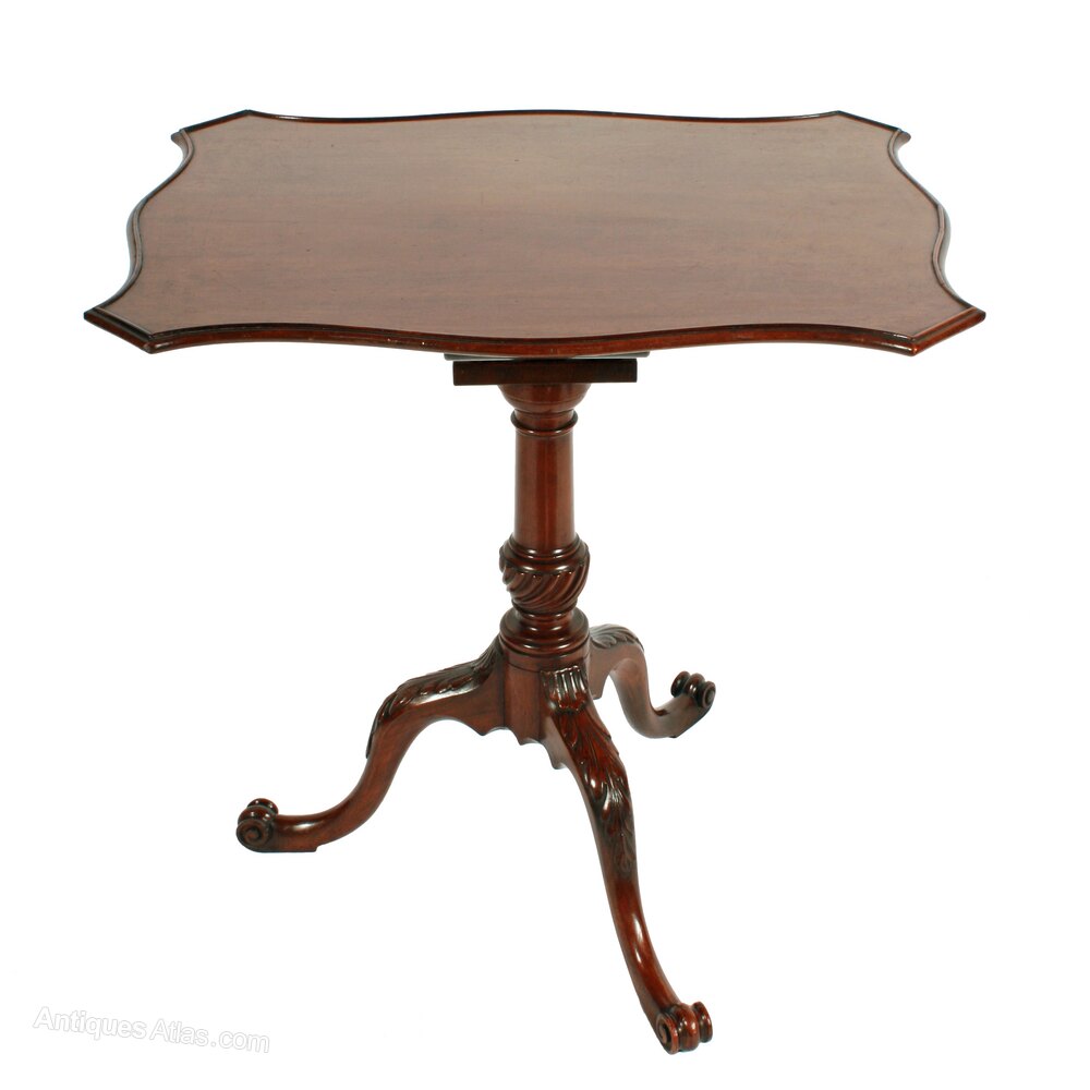 The table has three cabriole shaped legs that are beautifully carved with acanthus at the knees and have scroll toes.