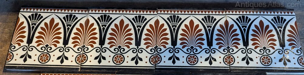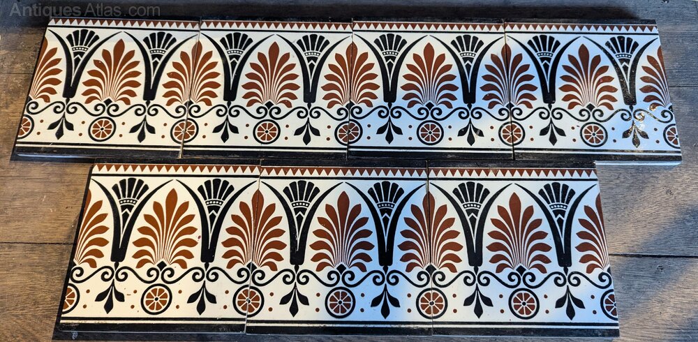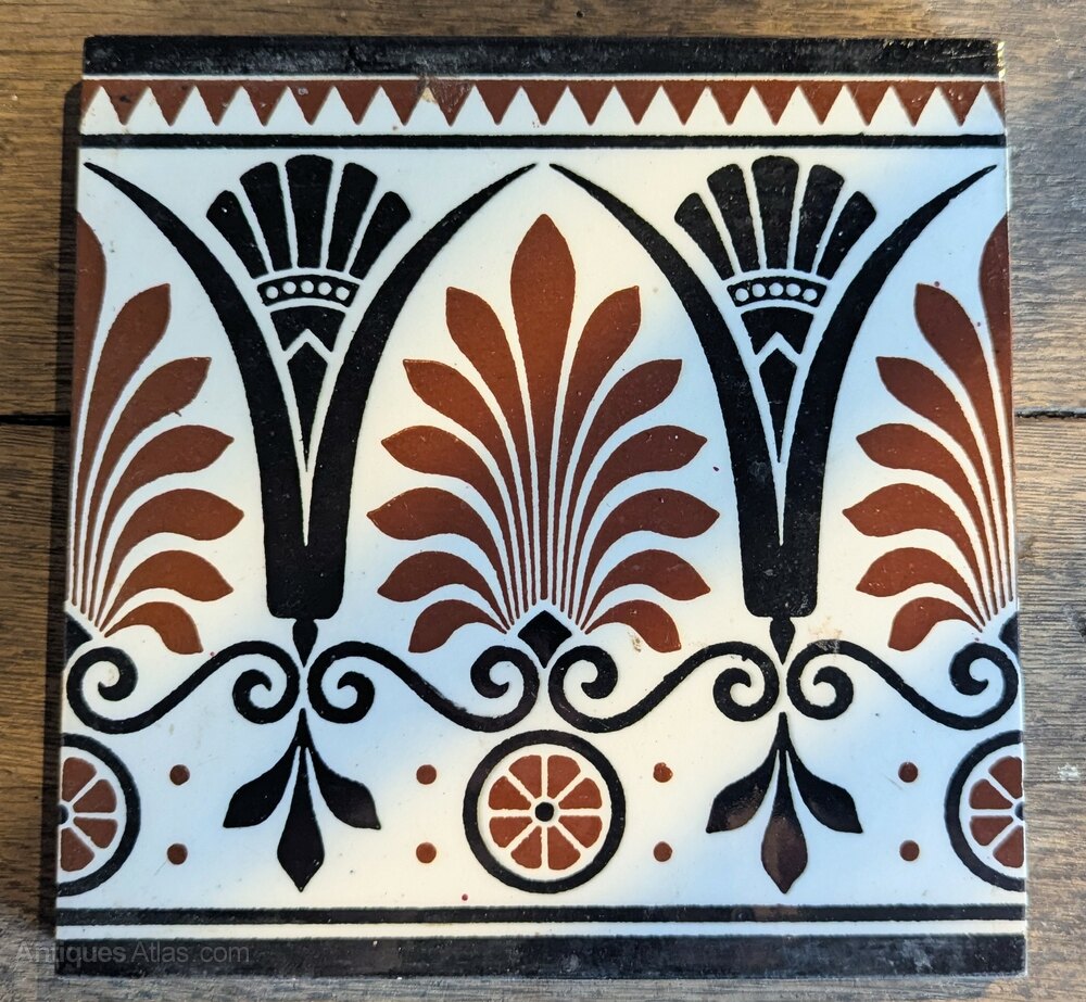 A set of 7 Minton tiles often attributed to Christopher Dresser in good condition with one tile with a slight chip.c1880.
