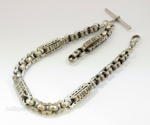 The chain measures 30cm long including the T-bar and the clasp. The piece is probably Continental and, as such, is not hallmarked but we have carried out tests and the results tell us it is silver, probably 800 purity.