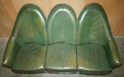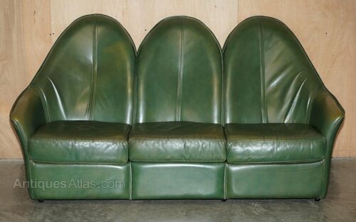 Circa 1970's Green Leather Art Modern Sofa Suite