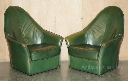 A very good looking well made and decorative suite, its rare to find it in deep bottle green, the arms and backs are wonderfully sculpted and finish with English cattle hide leather