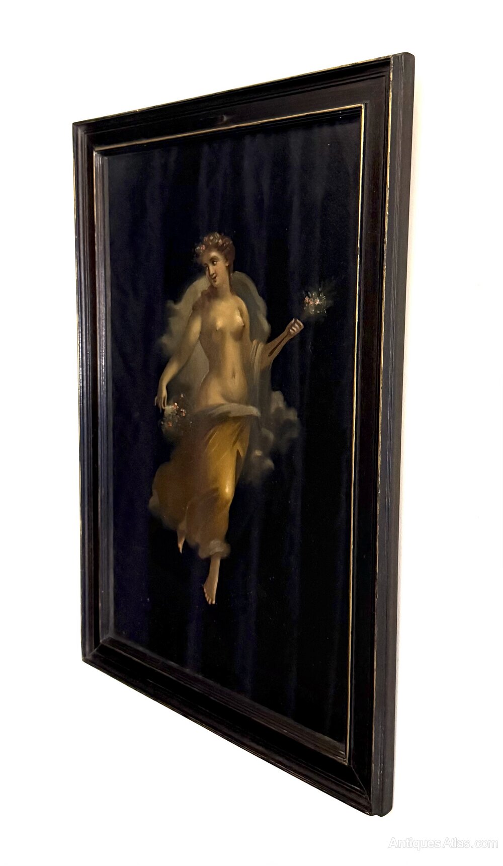 Its source of inspiration is a series of Roman paintings and decorative repertoires, inspired by the discoveries of the archaeological excavations of Herculaneum and Pompeii, begun in 1738 by Charles of Bourbon. In 1755, the monarch appointed various academics to be in charge of studying the pieces found and hired different artists to create drawings and engravings of these discoveries, including Giovanni Battista Casanova, Giovanni Elia Morghen and Carlo Nolli. An example is the treatise Le Antichità di Ercolano Esposte, a work composed of eight volumes that contains some of the models used to create the designs for this series, attributed to Michelangelo Maestri (1741-1812). Published between 1757 and 1792, it provided contemporary artists with abundant models from Antiquity, fostering the spread of Neoclassicism as an artistic movement.