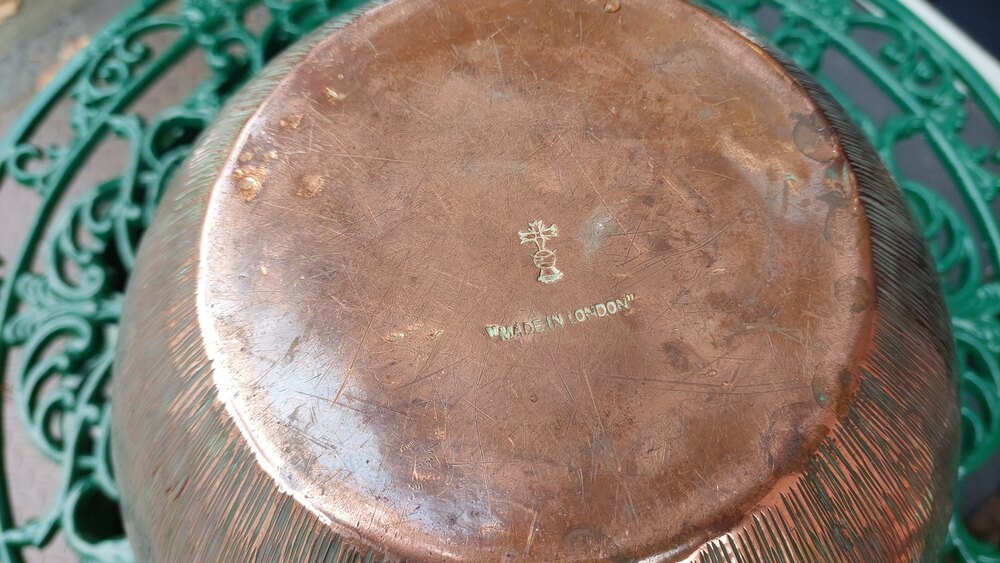 Copper Arts & Crafts Planter with Crepe Effect Ridges by Benham & Froude – London - 13" diam x 10.5"h
