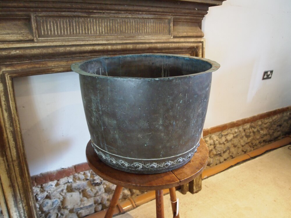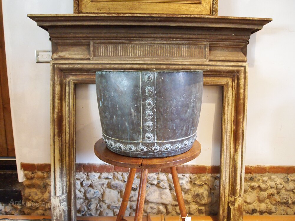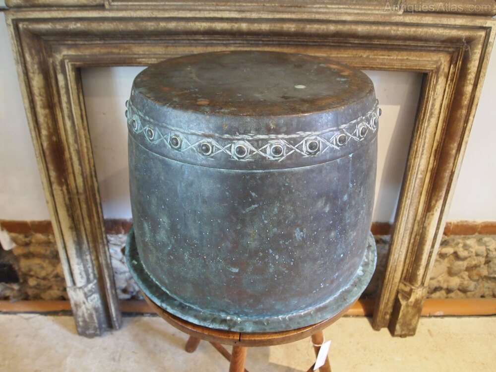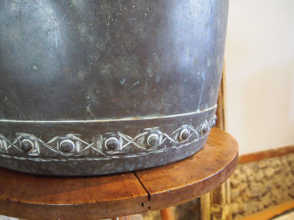 Here we have a very heavy guage Victorian Copper Copper or log bin c1870. As you can see the Copper has stunning colour and patina. Of typical reveted construction but incredibly decorative with the incised pattern around the rivets. Please note that this is not the normal thin Copper but of a much superior quality. The dimensions are 55 cm wide 36 cm high.
