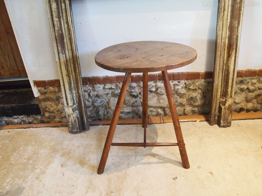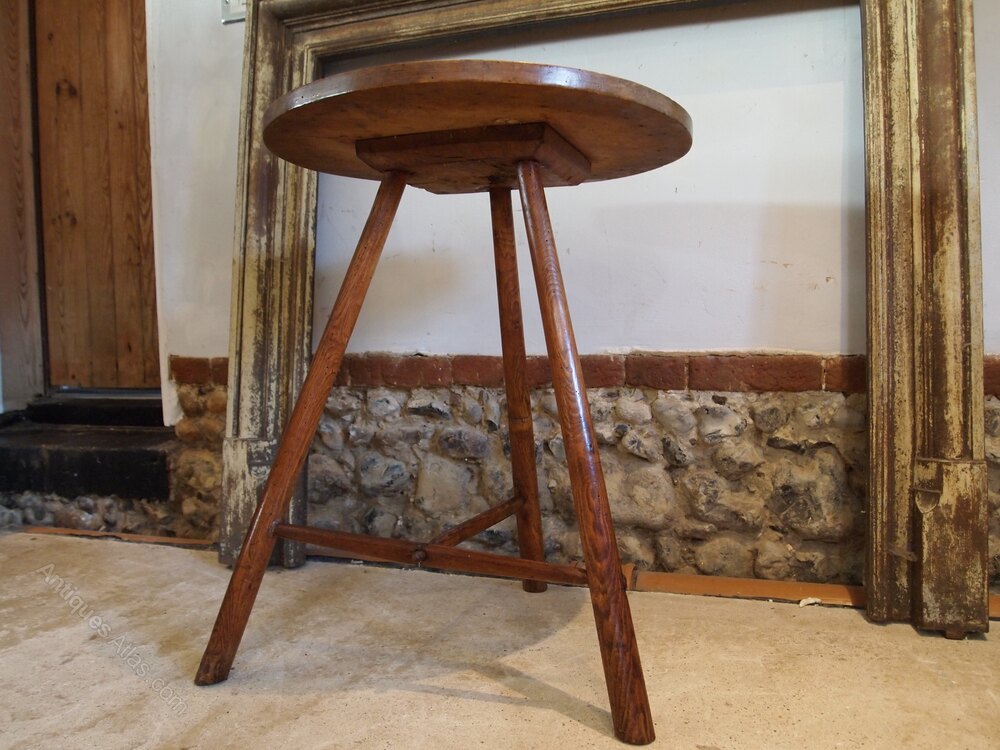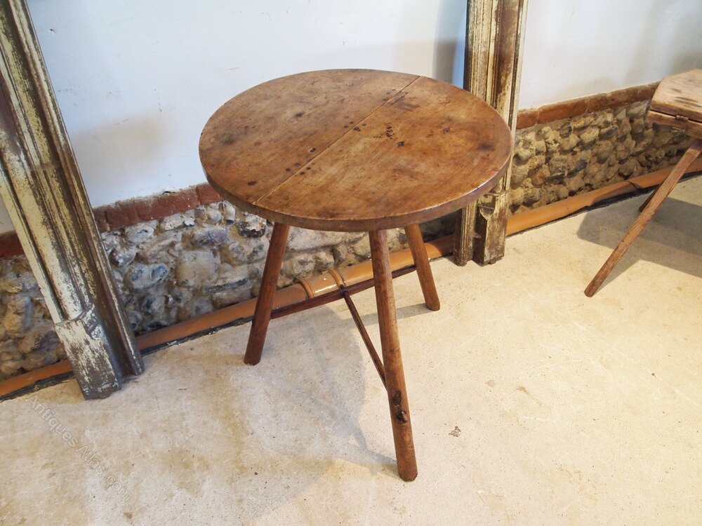 Here we have a very rare primitive Welsh George III Ash and Sycamore cricket table c1800. As you can see the table has the most delicious colour and patina. There is a two piece thick Sycamore top with typical Welsh multi pegged construction. Below there are beautifully turned and tapered Ash legs and stretchers. A lovely example of its type and ready to grace any collection The dimensions are approx 54 cm wide 54 cm deep 70 cm high. Small repair to one leg.