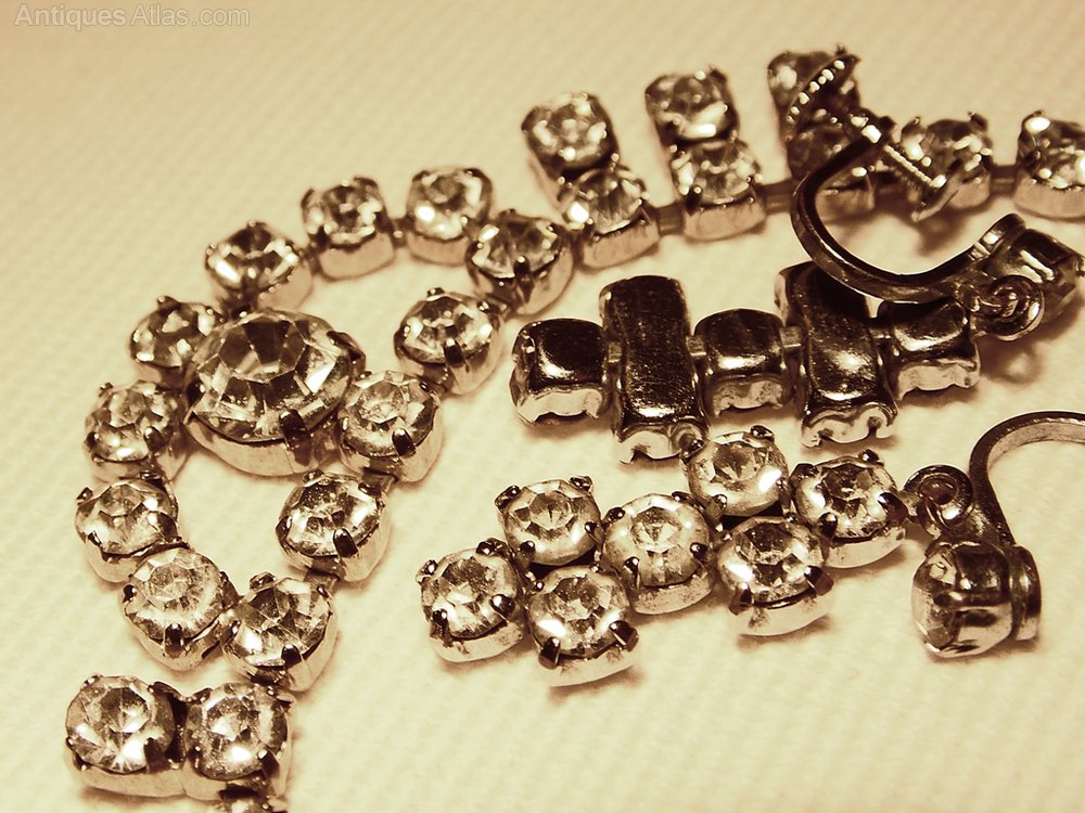This is a vintage 1950’s paste/rhinestone necklace and earrings set.