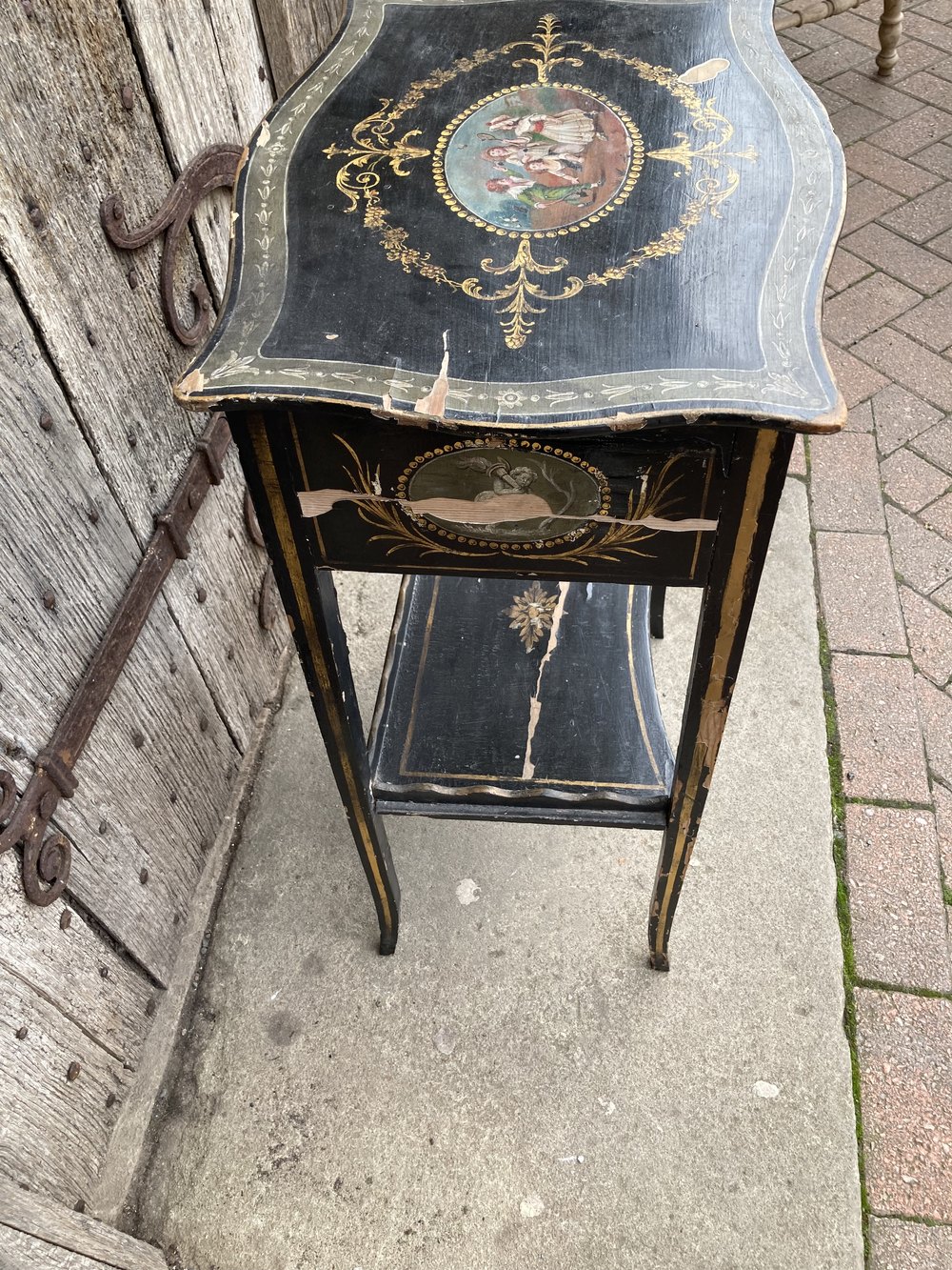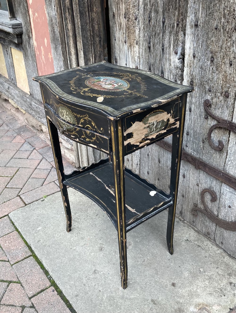 Early 19th century decorated side table, with drawer