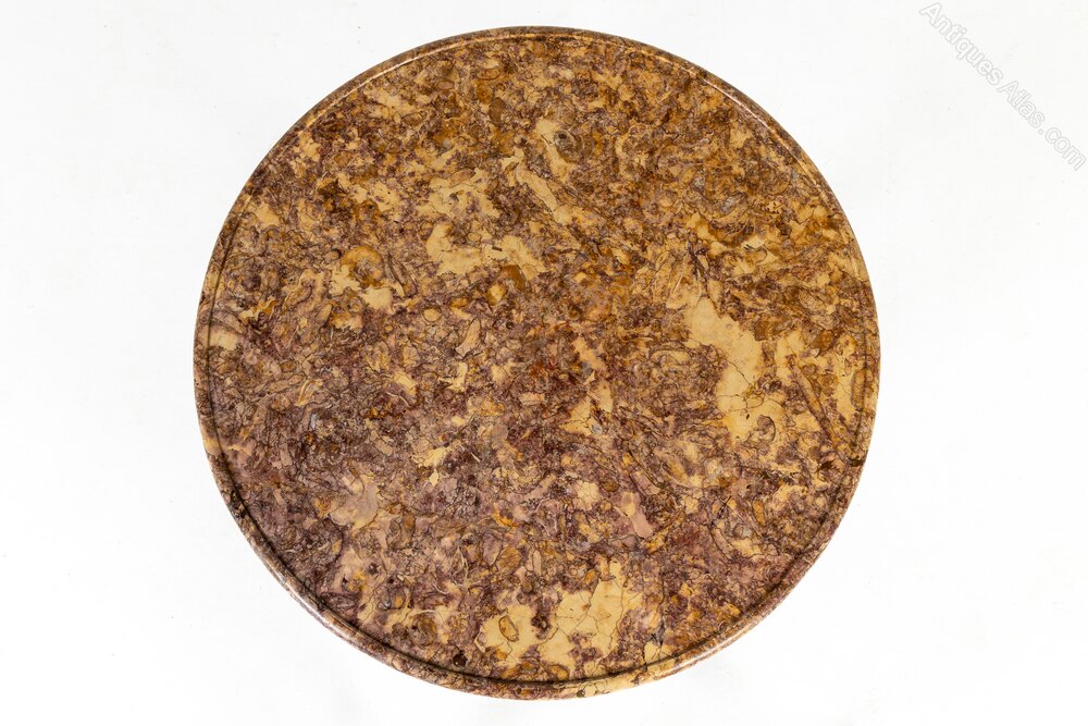 The colour of the gilding coordinates beautifully with the yellow highlights in the marble, producing a rich yet restrained effect. The gilding has aged beautifully and the variation in colour is extremely desirable. This is a very superior model of table.