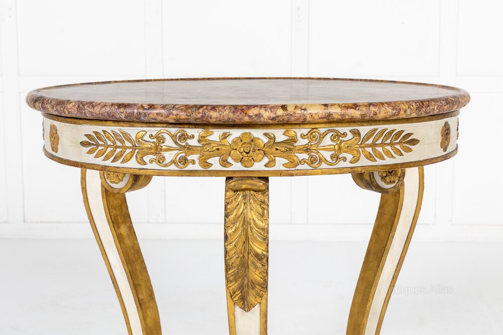 An Early 19th Century French White Painted and Gilt Guéridon, with Fine and Original Marble Top.