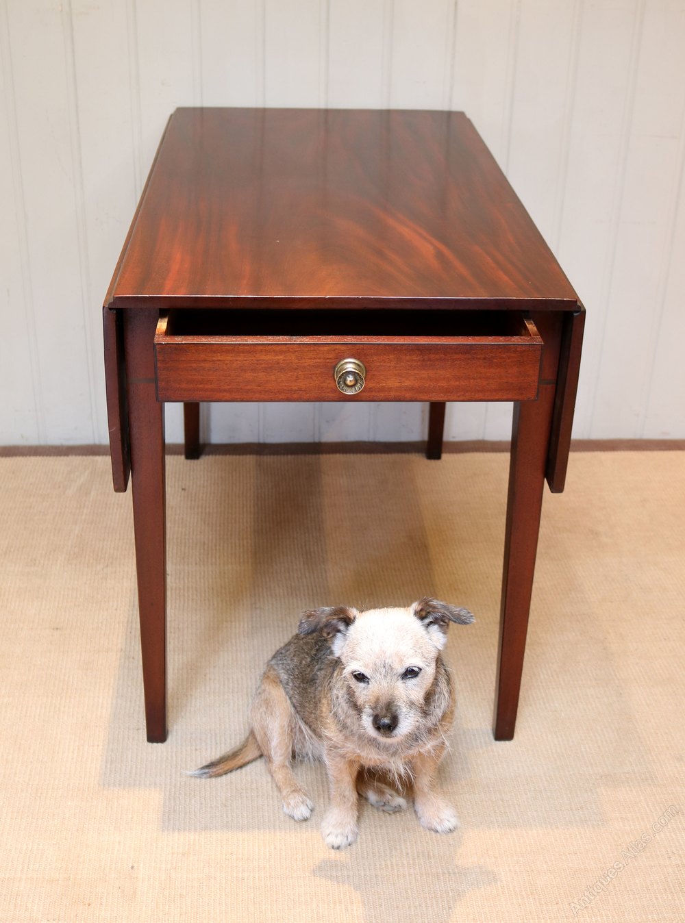 Early 19th Century mahogany drop leaf pembroke table having a central drawer with drop leaves to each side raised on straight tapering legs.When closed the width is 55cm