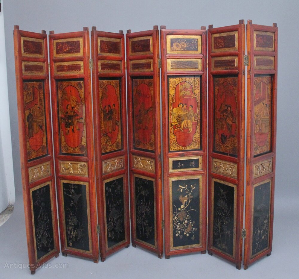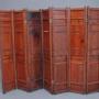 A highly decorative early 20th Century Chinese folding screen / divider consisting of seven panels, with each panel incorporating five individual panels, depicting various countryside scenes, wildlife, foliage and caved figures. Circa 1910.