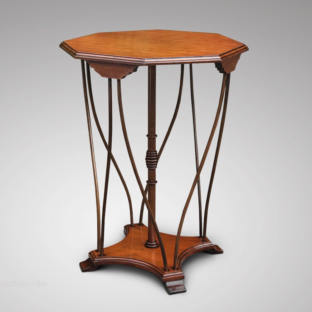 This very unusual octagonal mahogany table is raised on a turned column with 8 bentwood supports. It stands on a concave base and four shaped feet. The table has a lovely rich colour and the condition is excellent.