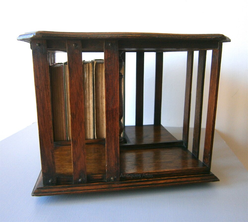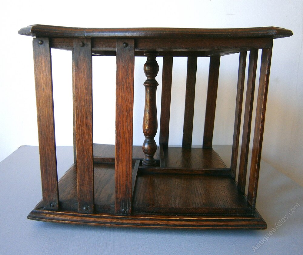 Edwardian Oak Table or Desk Top Revolving Bookcase