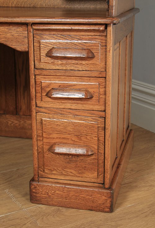 Edwardian 4ft 2” Oak Roll Top Pedestal Office Desk