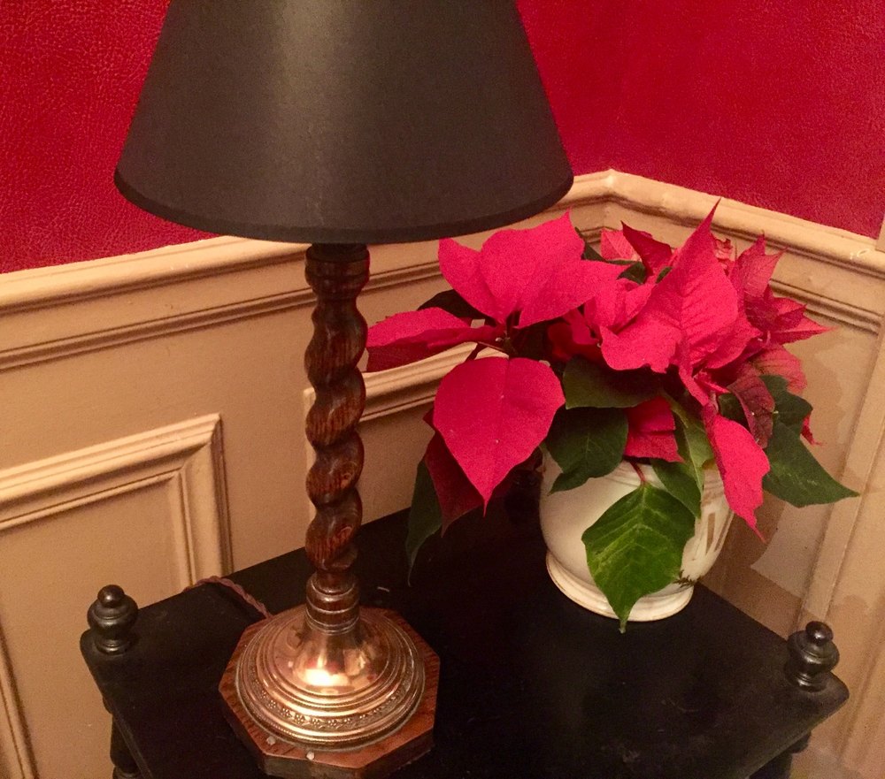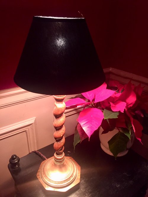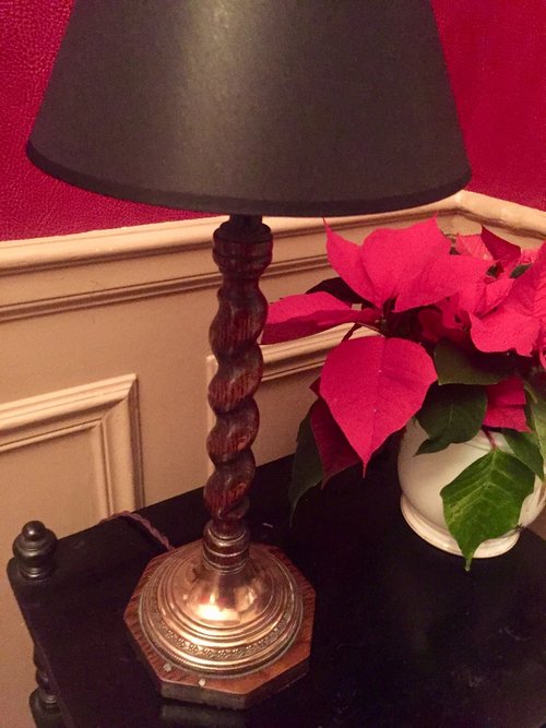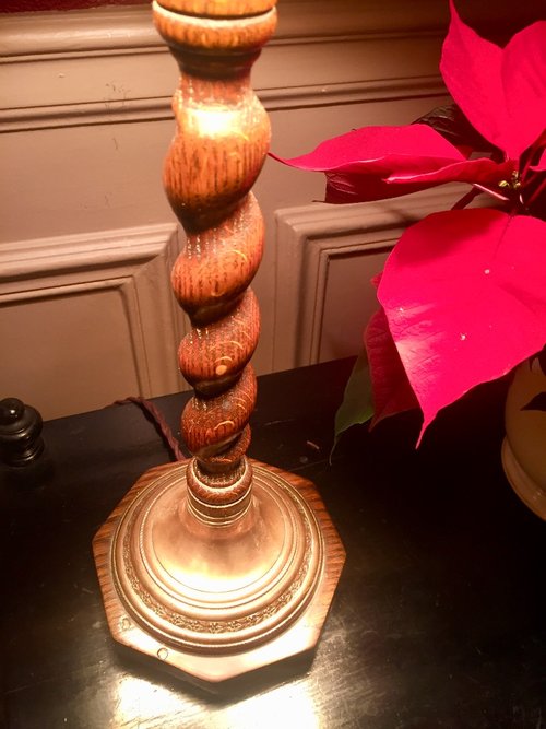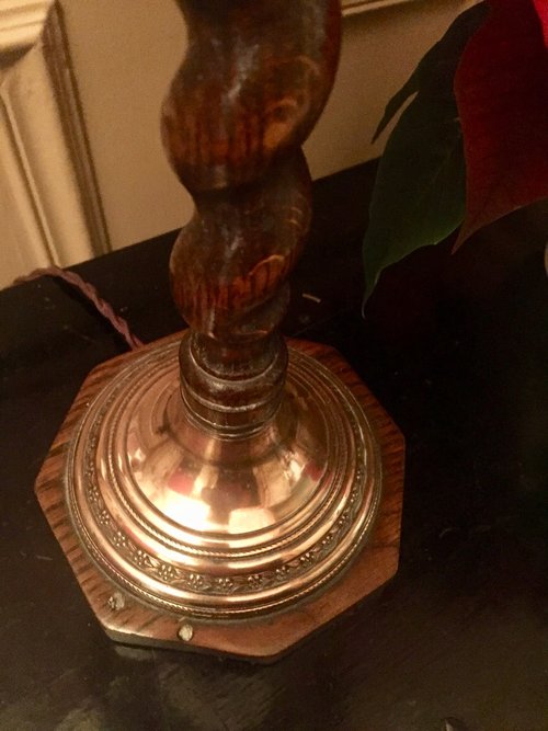 Edwardian Barley Twist Lamp Oak on Copper