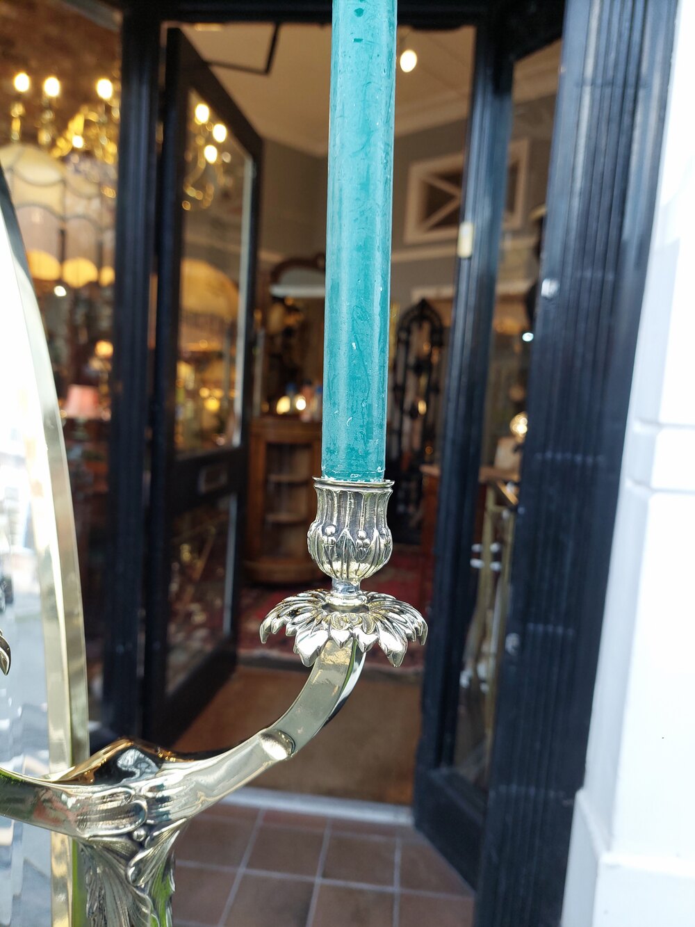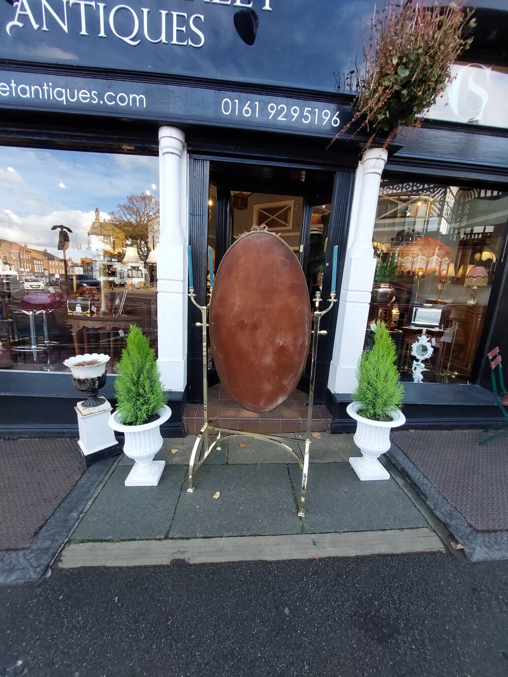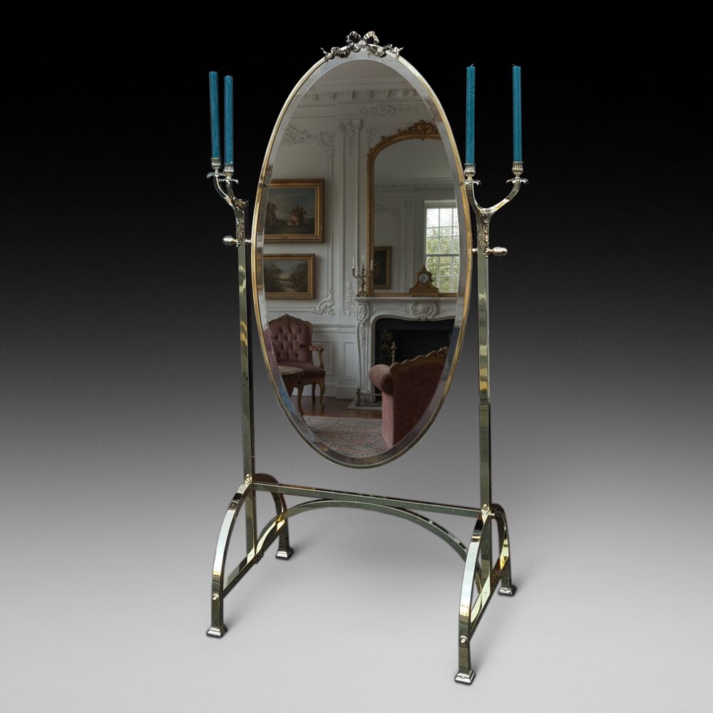 Edwardian Brass Framed Cheval Mirror - with bevelled glass and with candle sconces to the brass frame support - 38.5"w x 20.5"d x 68"h