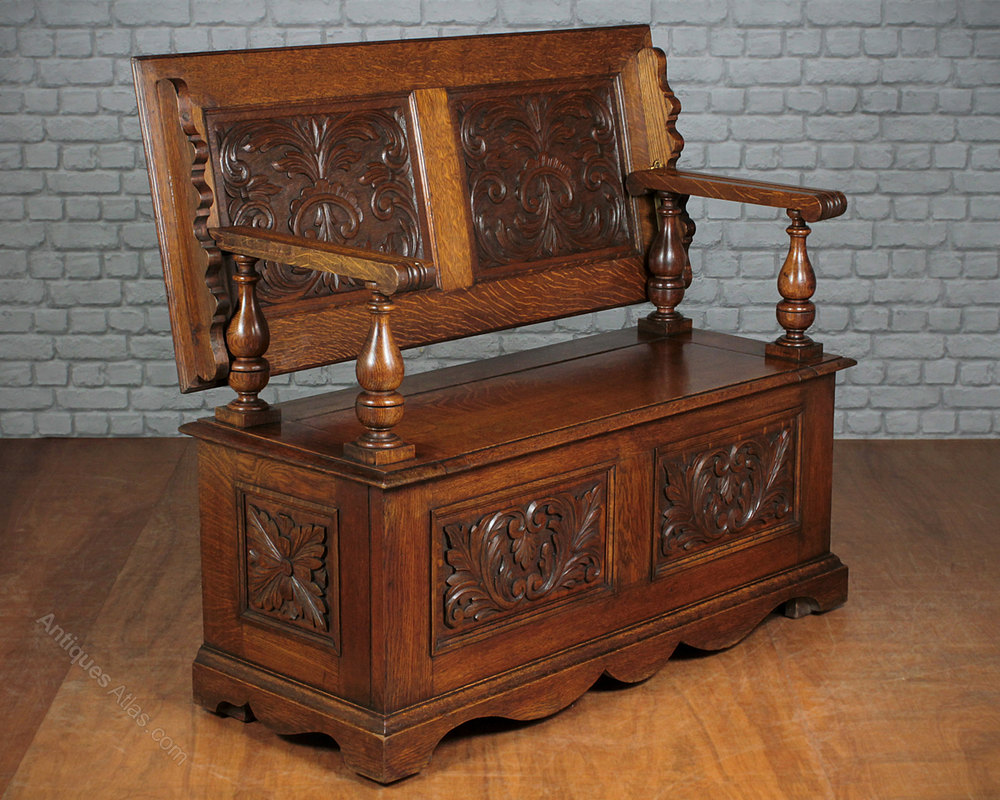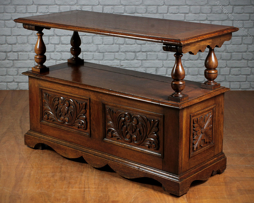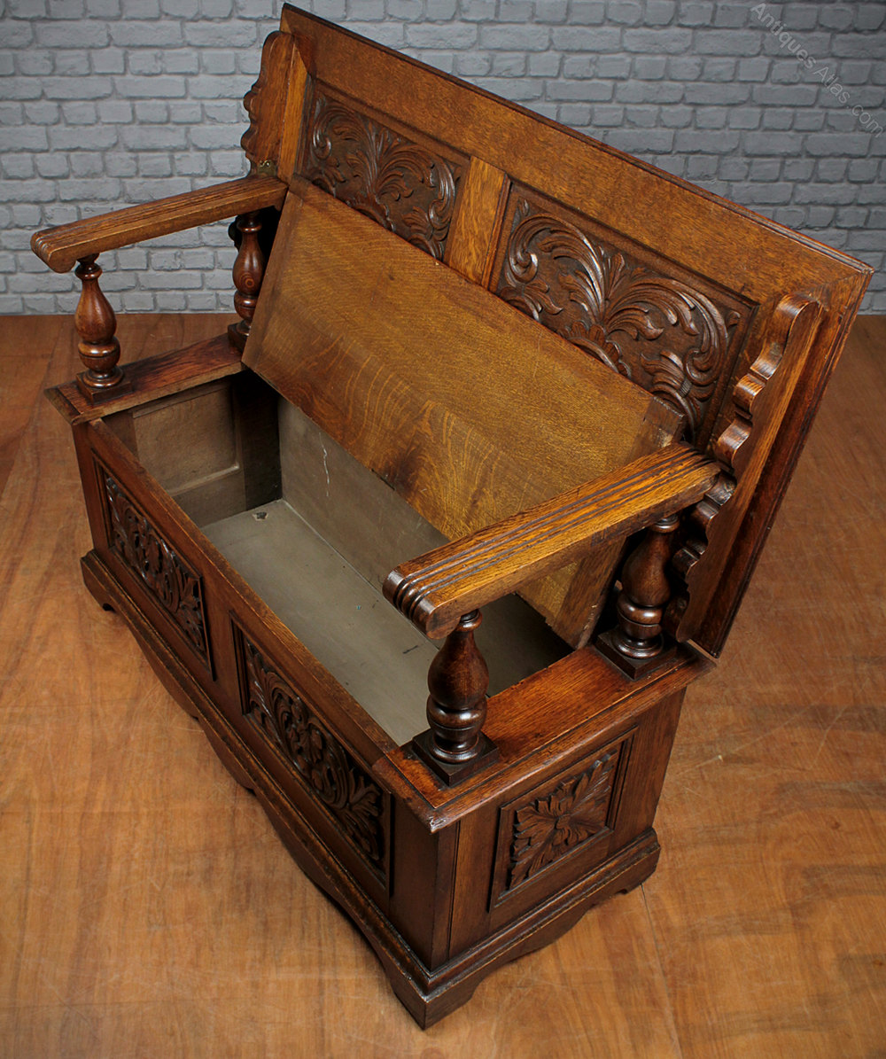 Edwardian Carved Oak Monk’s Bench c.1910.