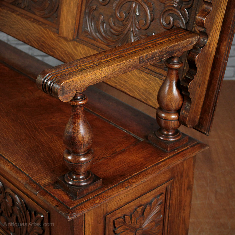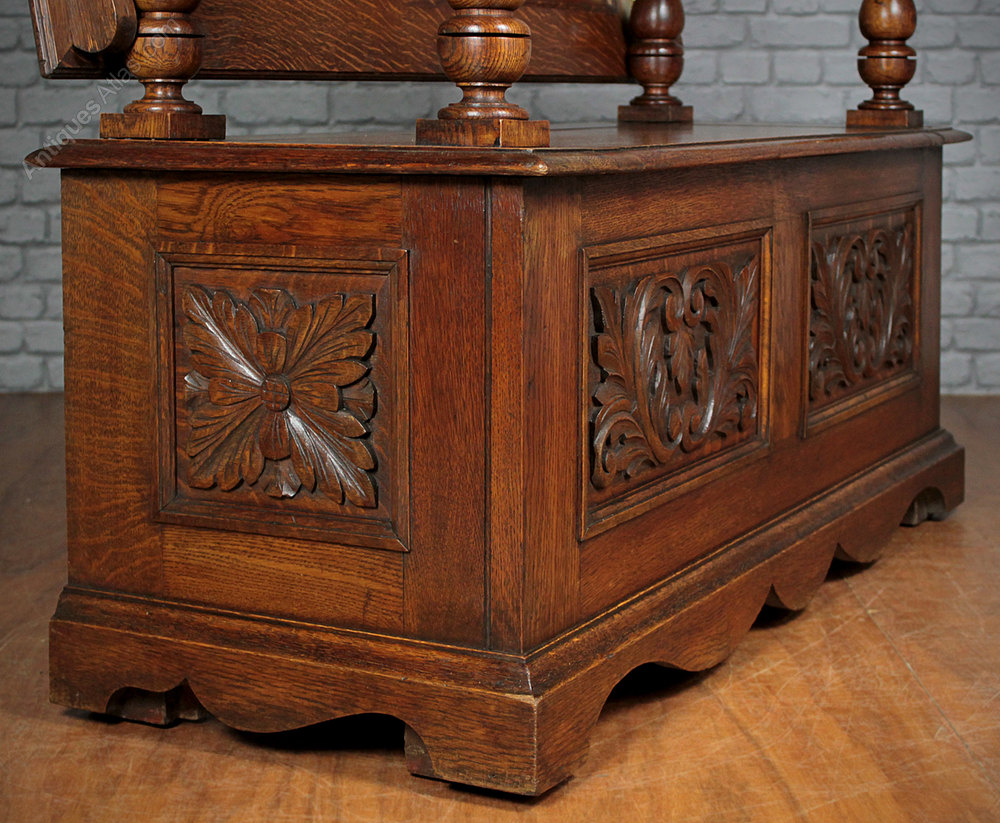 Carved Oak Canopy Top Box Settle c.1920