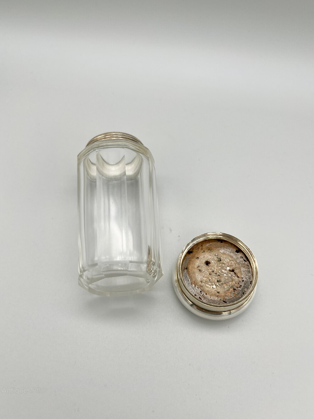 Condition is very good, with no chips or cracks in the glass, no dings or dents in the silver and just the superficial surface wear that you would anticipate after over 115 years of use. The screw top works smoothly and fastens tightly. Please make sure to view all the photographs.