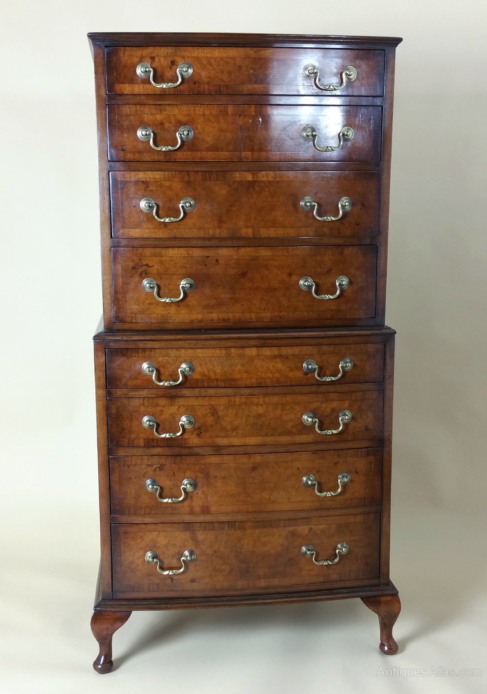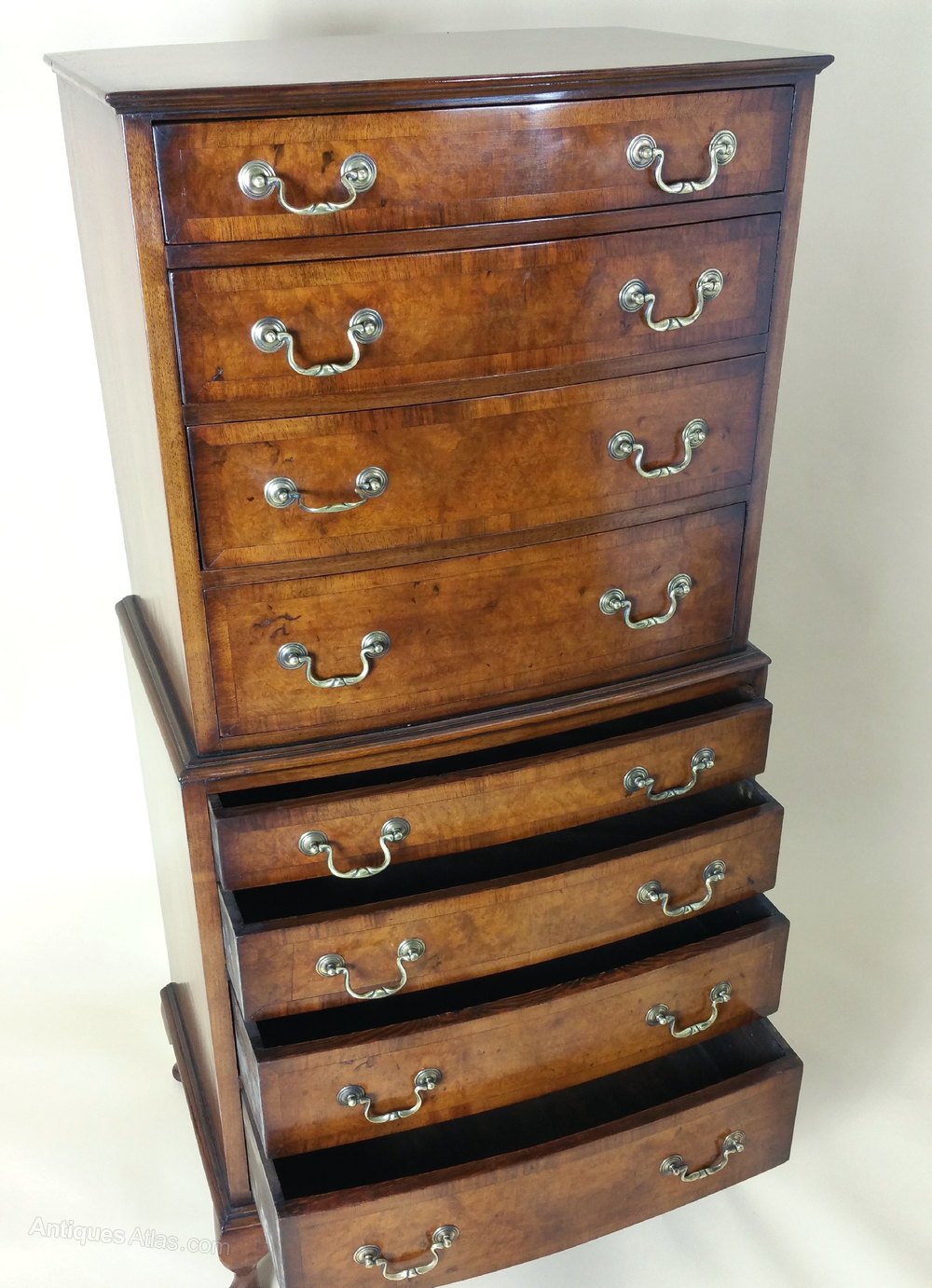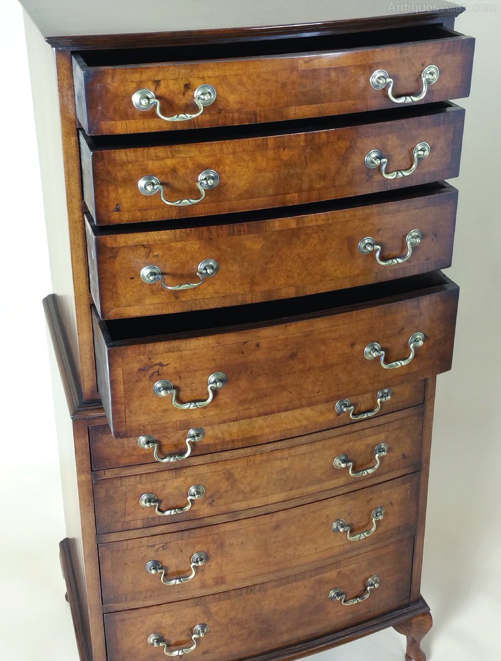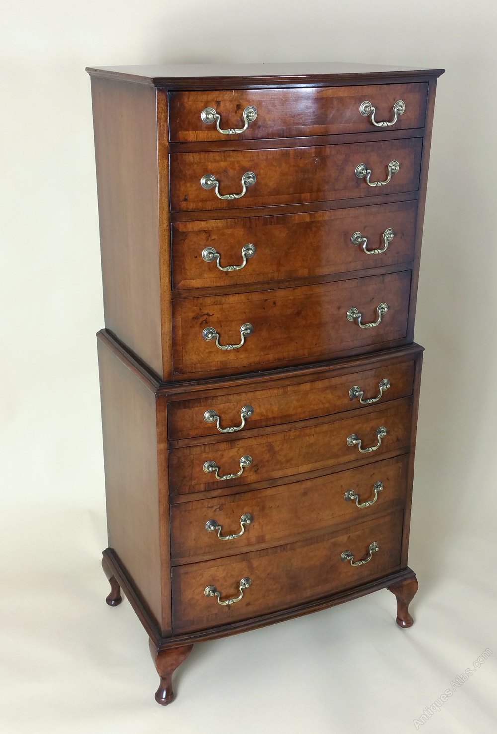 Edwardian Figured Walnut Bow Fronted Tallboy