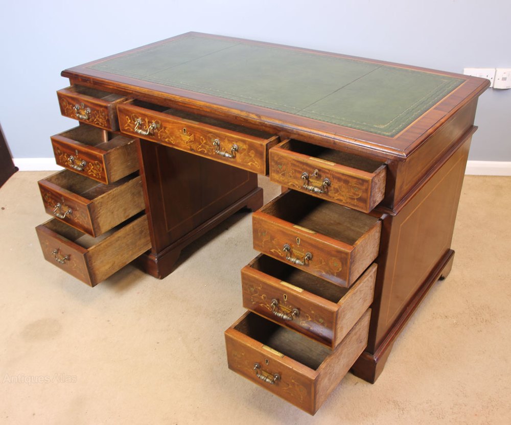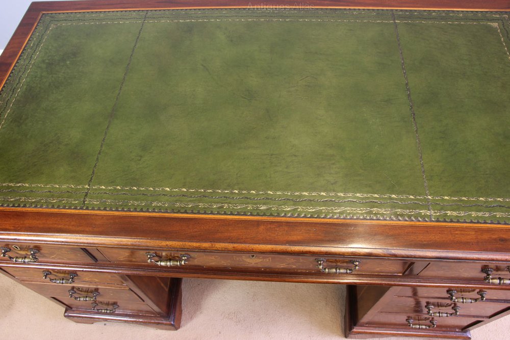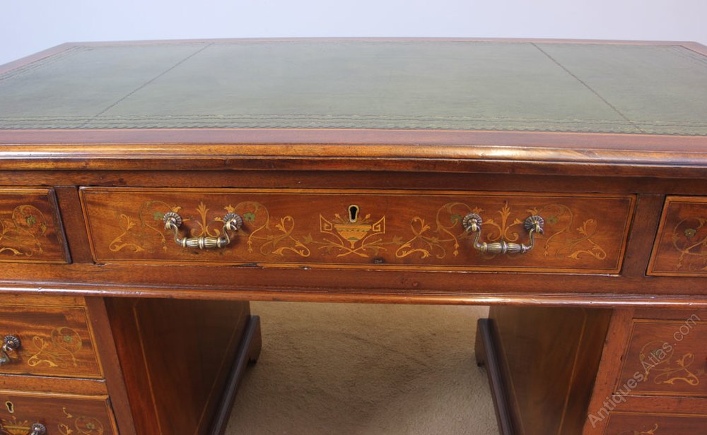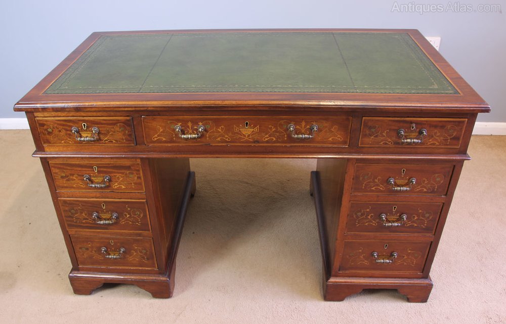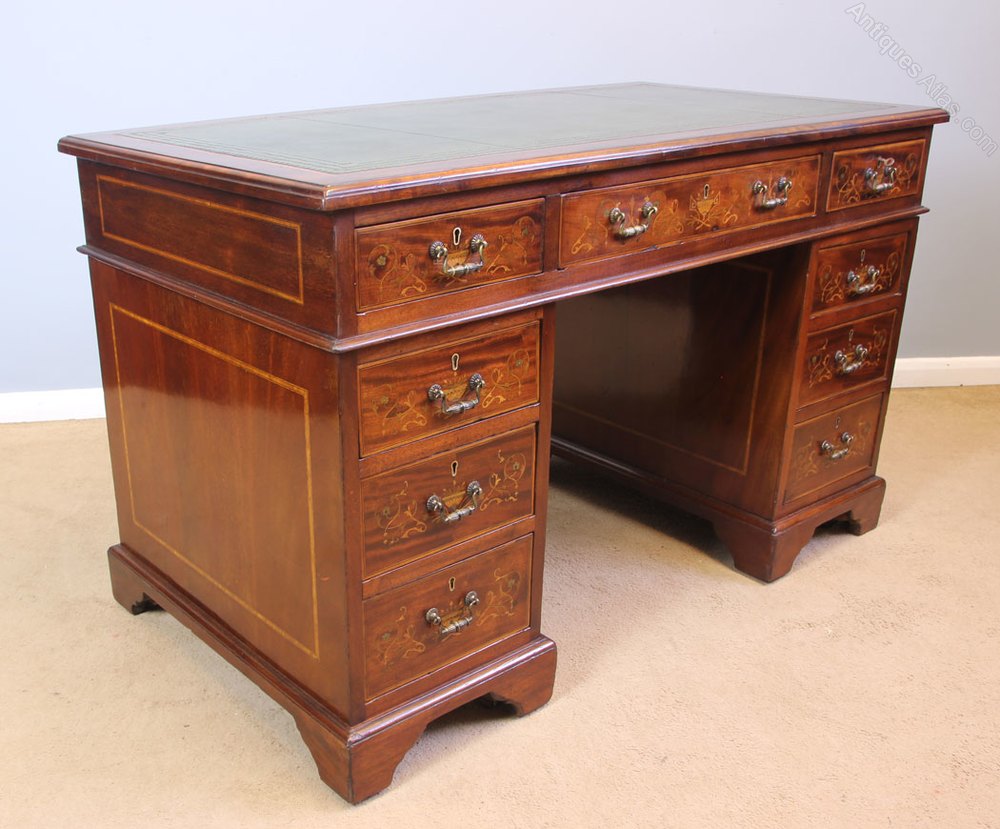 Edwardian Inlaid Knee Hole Mahogany Pedestal Desk