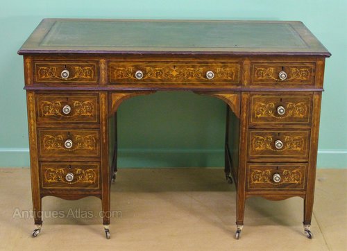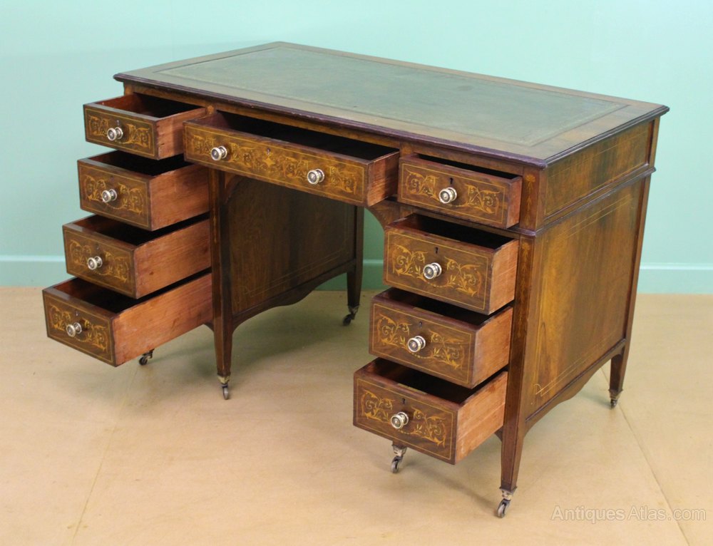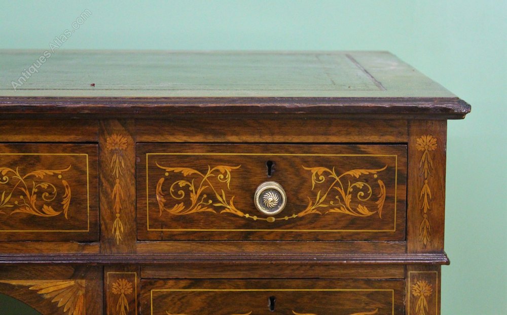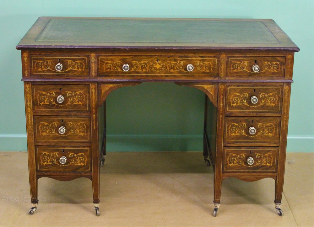 Antique Victorian Mahogany Inlaid Kneehole Desk