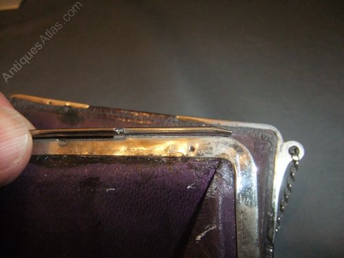 There are no silver marks on the chain carry handle but it cleaned up like silver.