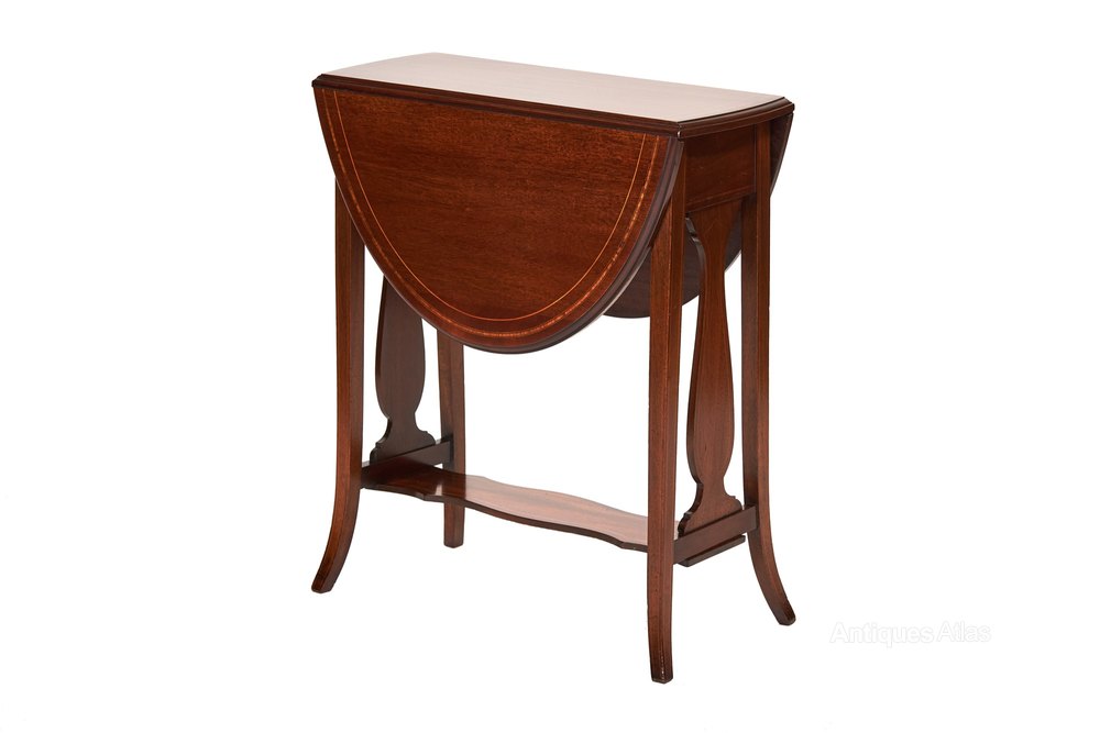 Edwardian Mahogany inlaid Drop Leaf/ Swivel top tea table,