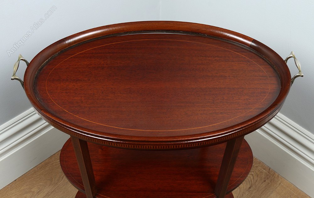 Edwardian Mahogany Inlaid Oval Stand / Drinks Tray