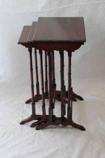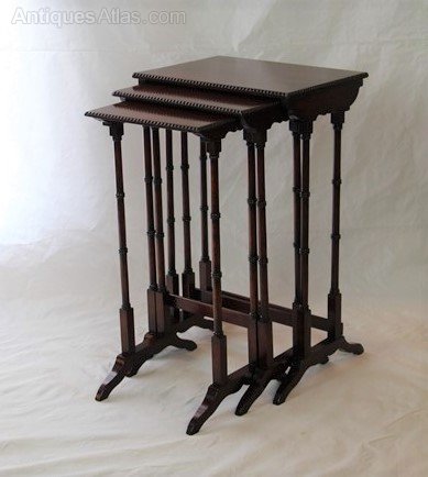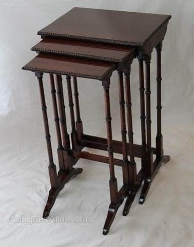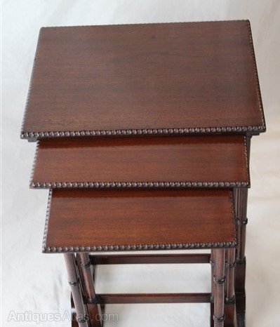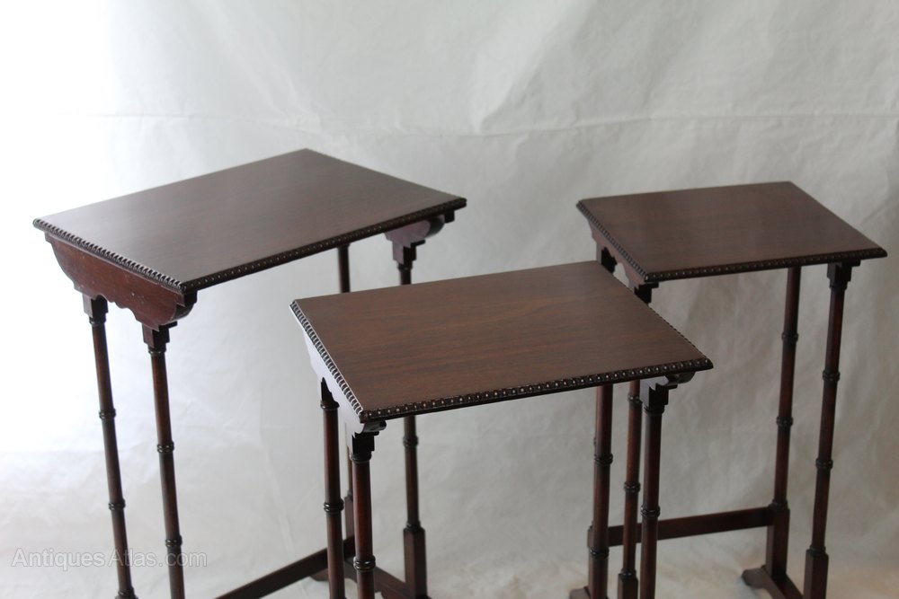 Lovely nest of three Edwardian mahogany antique tables, with super beaded edges.