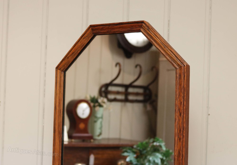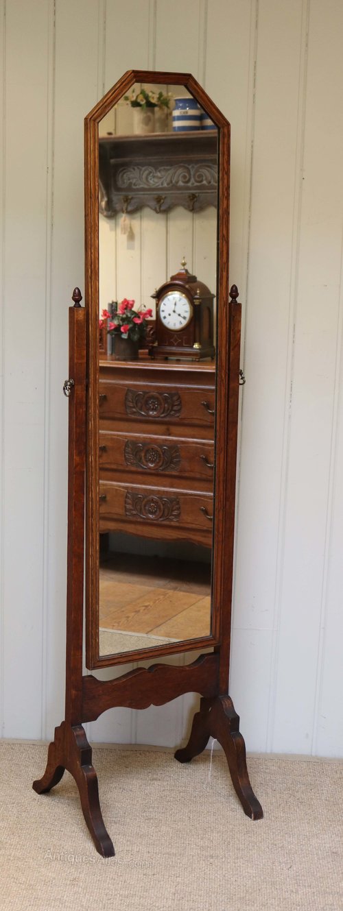 Edwardian Oak Framed Cheval Mirror