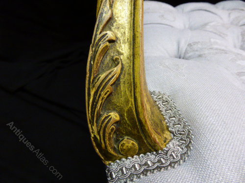 A wonderful stylish pair of French chairs with deep buttoned seats and new quality upholstery. They are in excellent condition with elements of original gilt to the elegant frames which gives that really antique look.