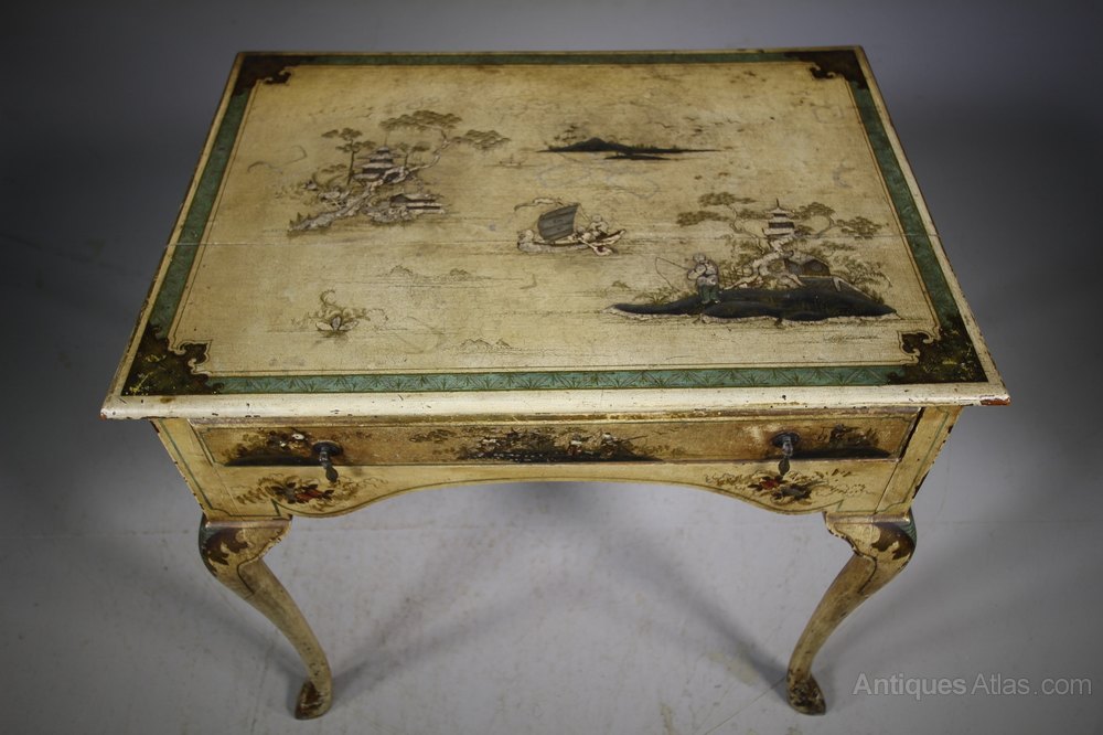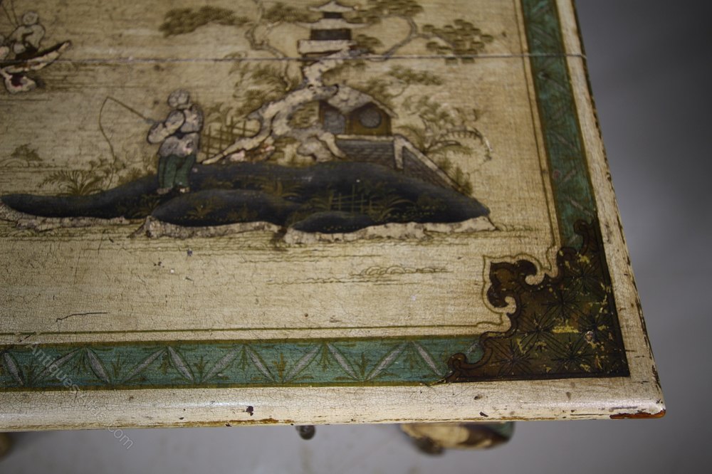 English 19th C Antique Chinoiserie Lowboy Table