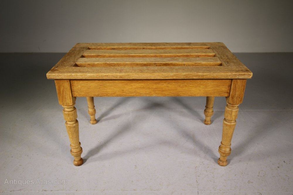 19th century quality solid oak antique luggage rack / stand in super condition, clean and strong. Featuringa slatted top with well turned legs. English and dating from around 1880. Perfect for guest rooms and bathrooms.