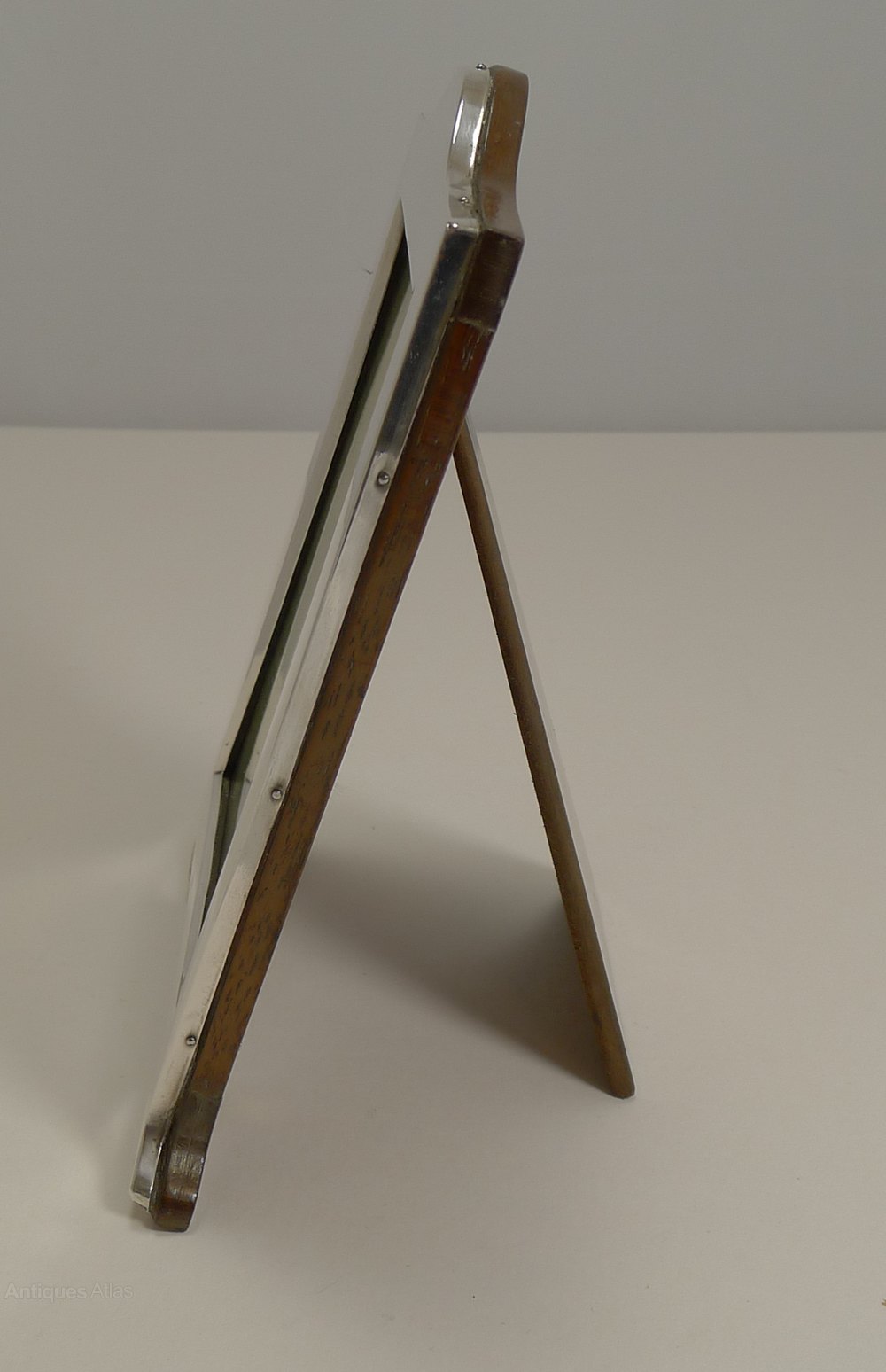 The backing is made from solid Mahogany with a folding easel back. The two feet have a definite Art Nouveau design which fits with the date of this very elegant frame.
