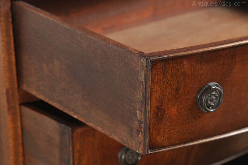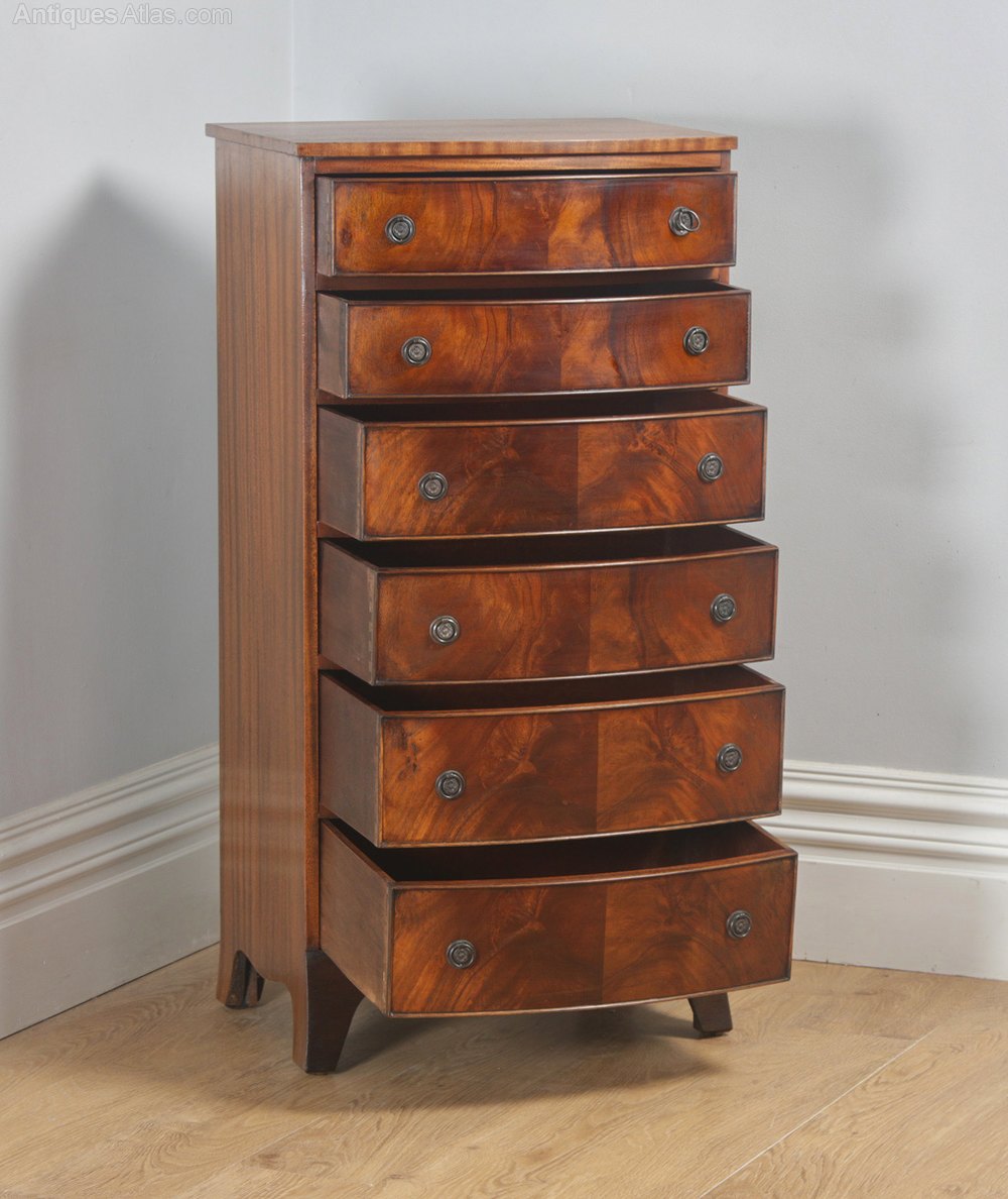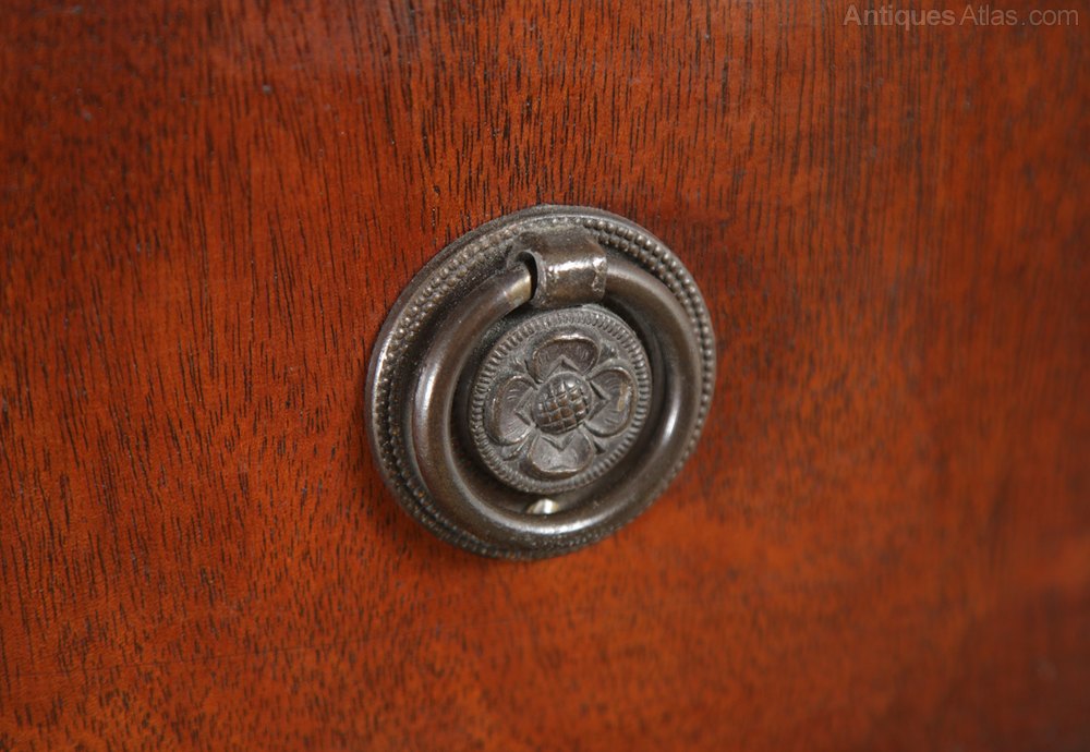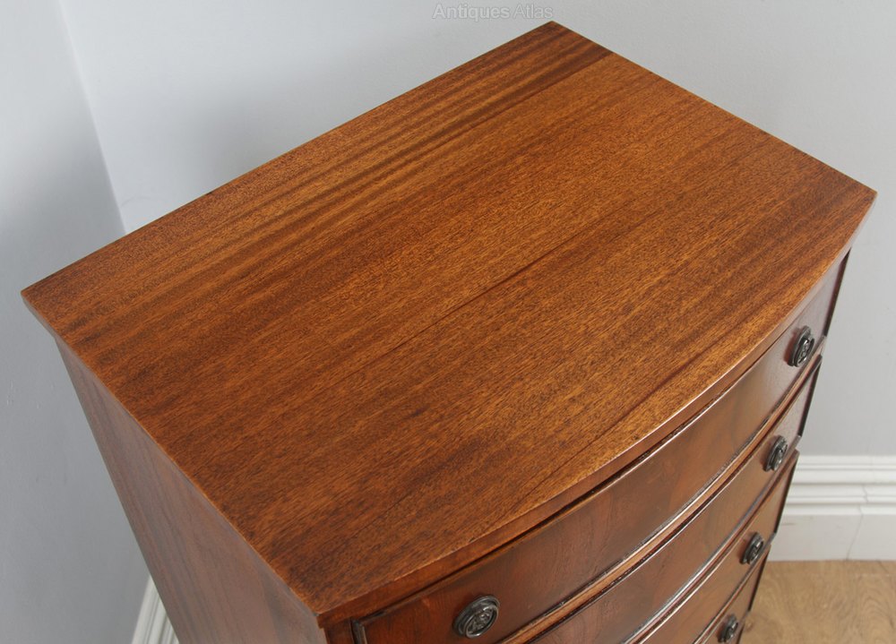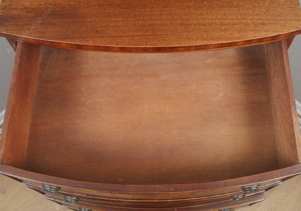 The chest boasts a rich brown mahogany colour. As it boasts the original polish, it has a fantastic colour and patination this can only be achieved through age and years of care and cleaning it has received.