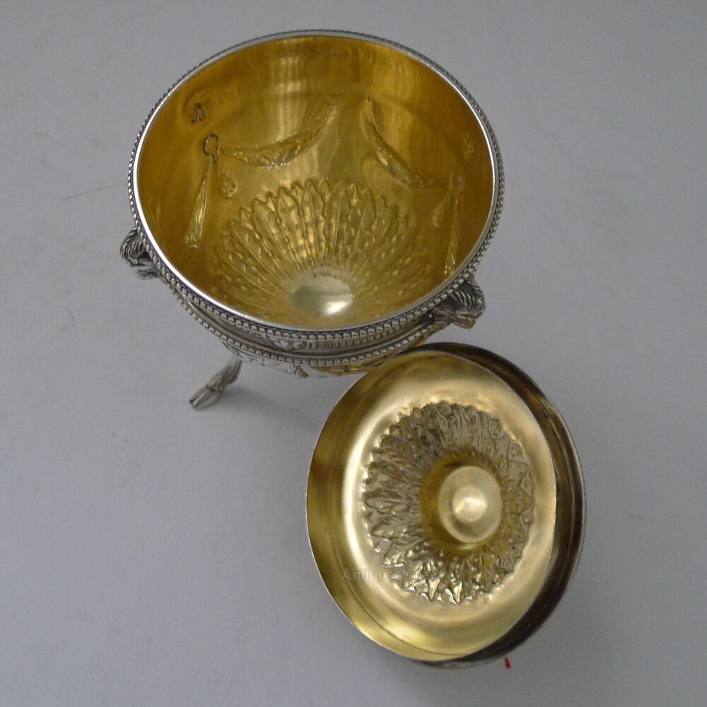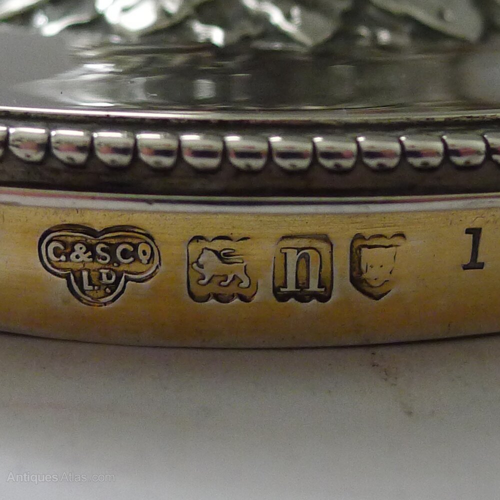 The silver is fully hallmarked for London 1908, Edwardian in era and a true antique, over 100 years old. The makers mark is also present for the top notch London silversmith, "Goldsmiths and Silversmtihs Co. Ltd." A matching set of marks can be found on the rim of the lid.