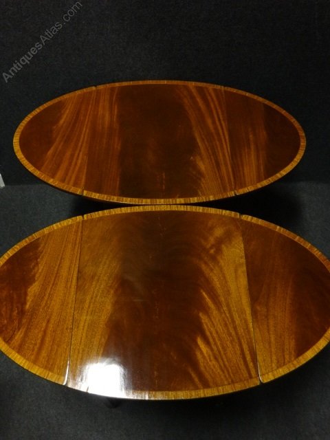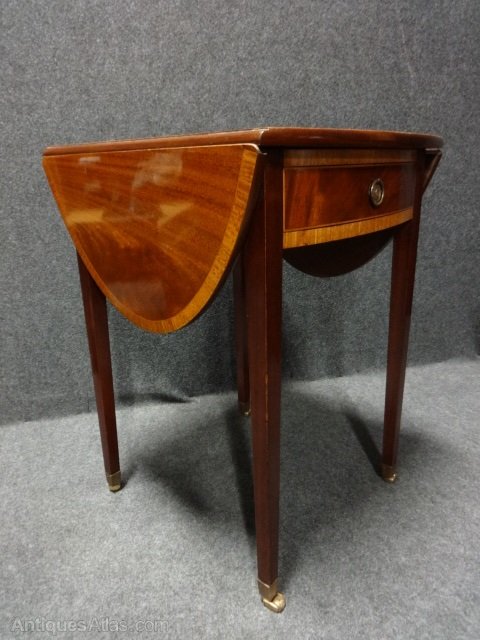 A stunning pair of solid mahogany sofa antique tables or end tables , oval tops with boxed fronts, working drawer to one end, dummy to the other, brass ring handles, satinwood banding, tops have been repolished in our showrooms, standing on brass castors. and in excellent condition.