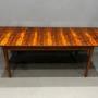 Having a fabulous original colour without fade and vibrant grain to the rosewood top and with the original additional leaf which is a perfect colour match and which stores underneath the main table top when not in use.