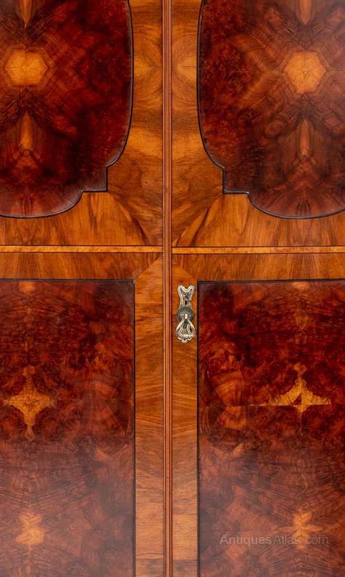 The 2 doors having wonderful Burr Walnut panels with ebony stringing.