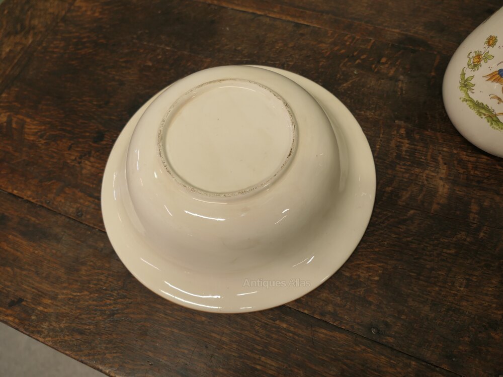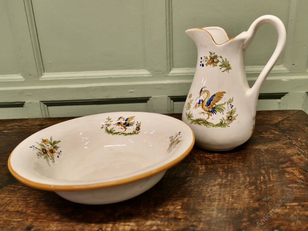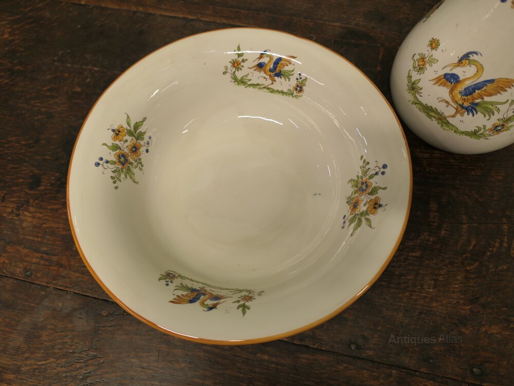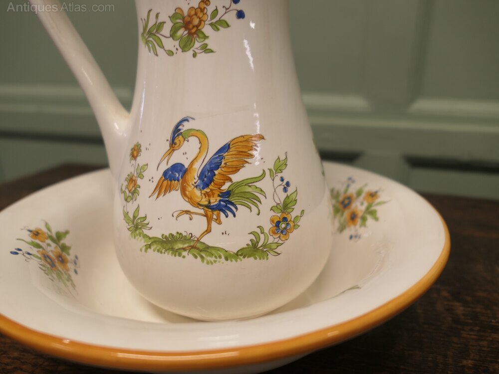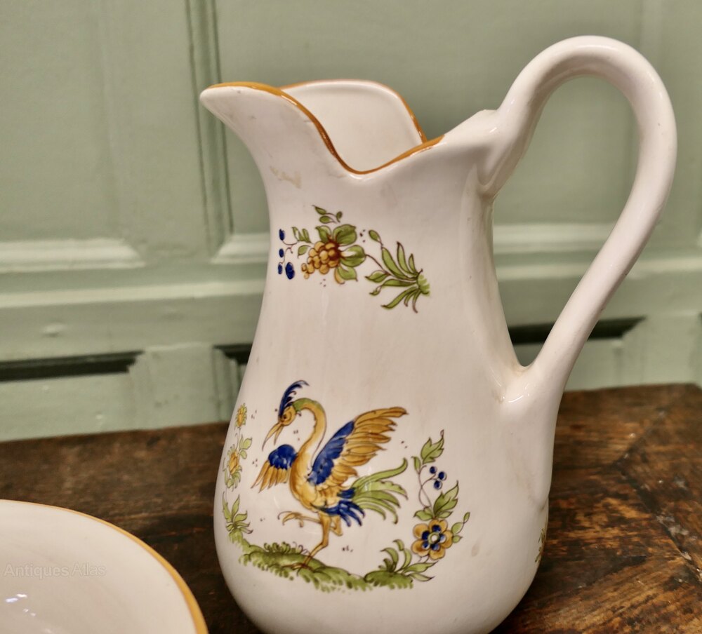Faience Pitcher and Bowl Hand Painted, Birds